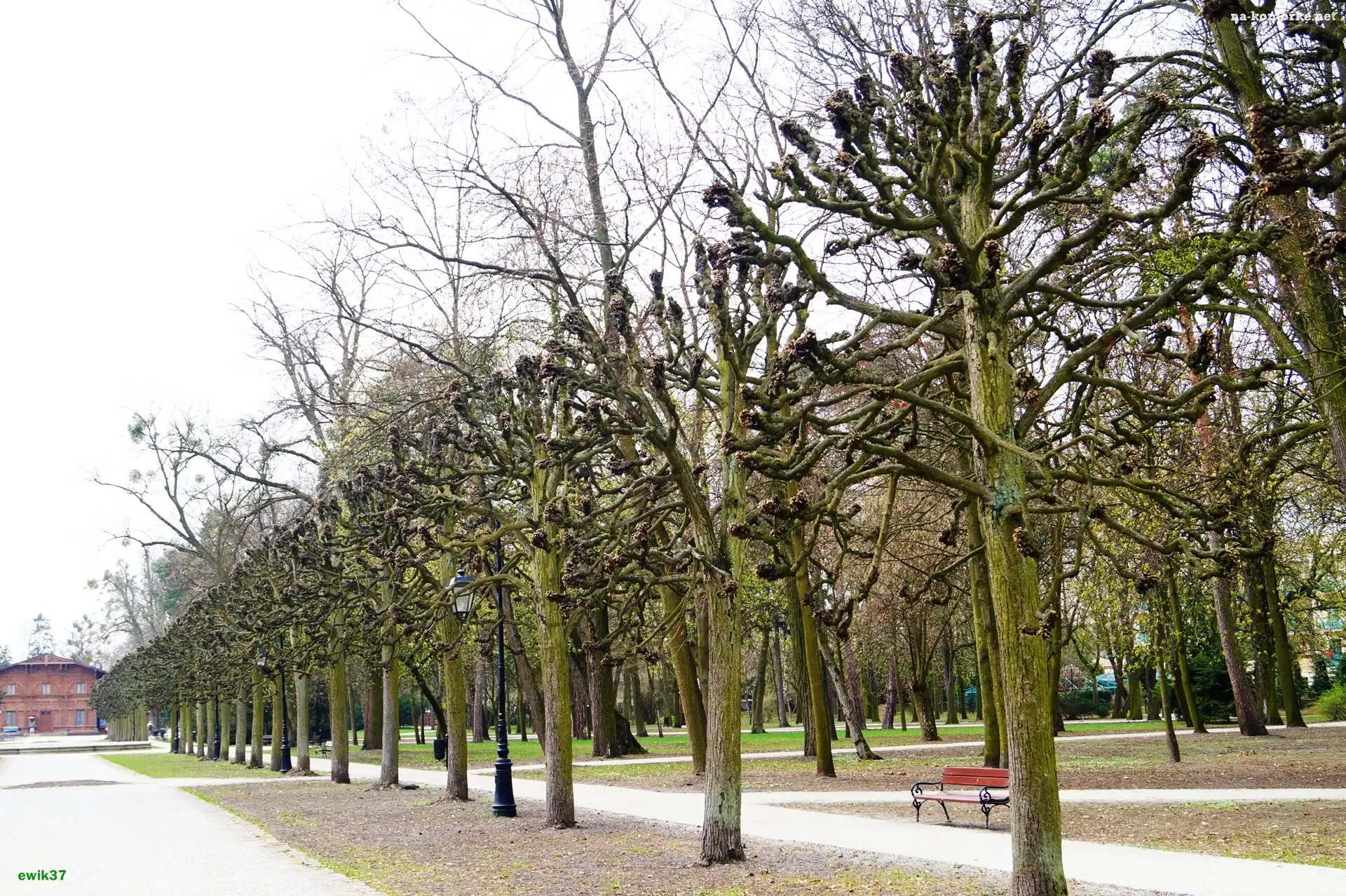 Drzewa, Budynek, Ciechocinek, Park, Park, Ławka na Komórkę
