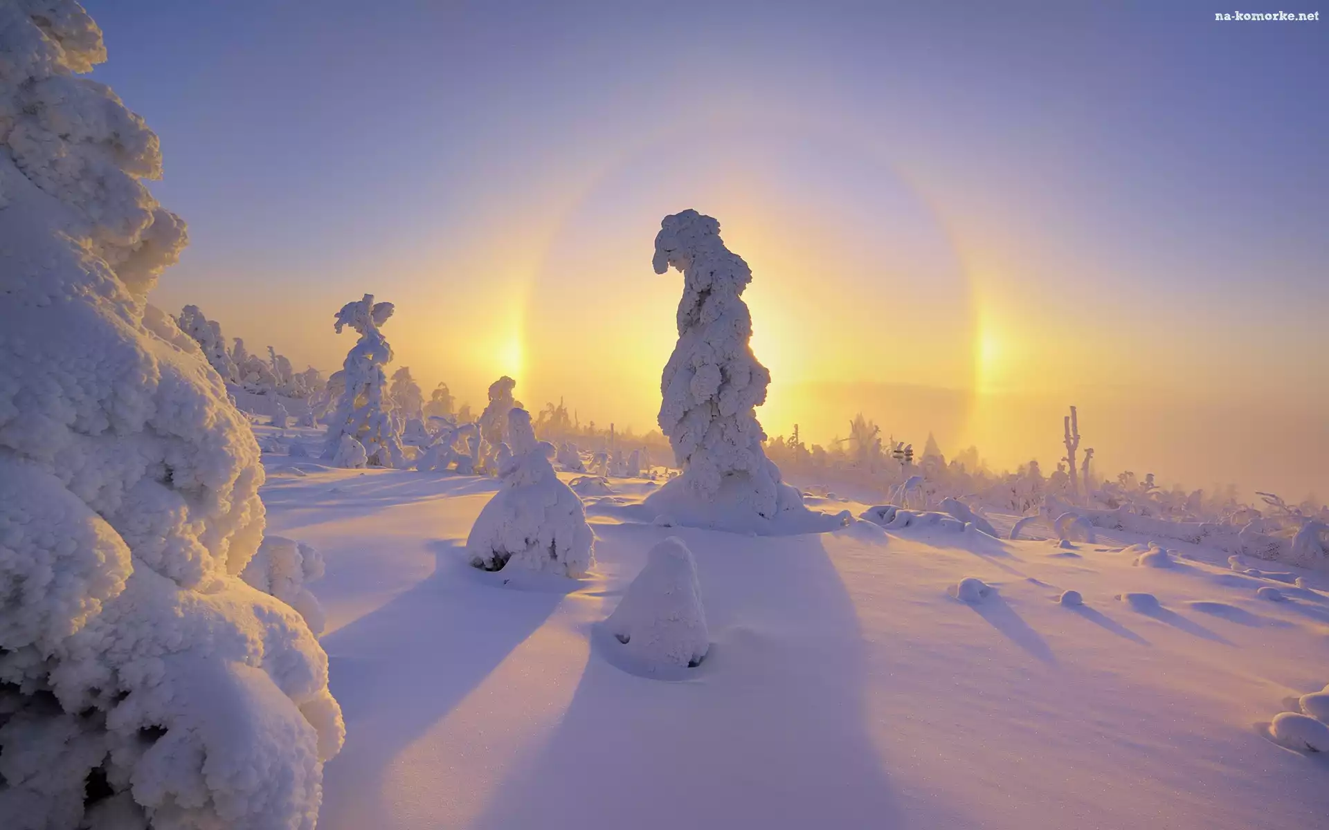 Drzewa, Słońce, Pokryte, Śniegiem na Komórkę