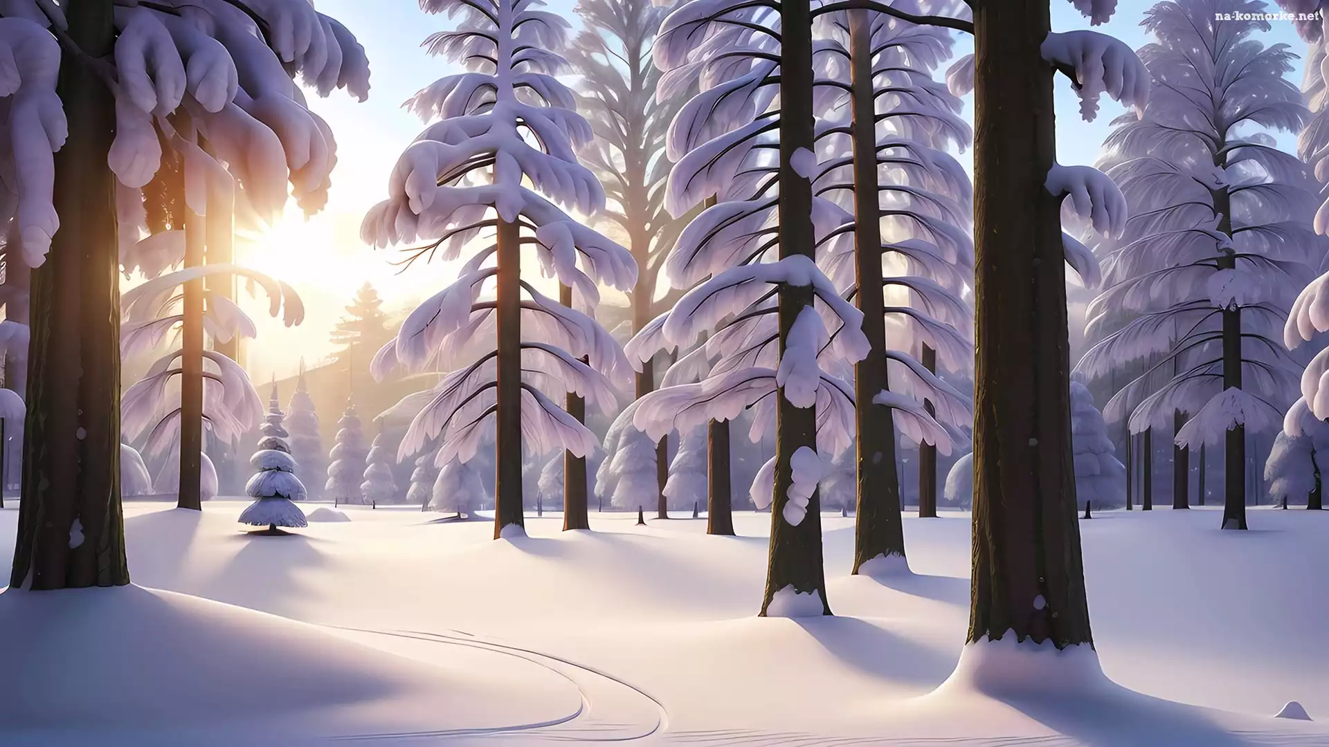 Zima, Drzewa, Poranek, Las, Grafika na Komórkę