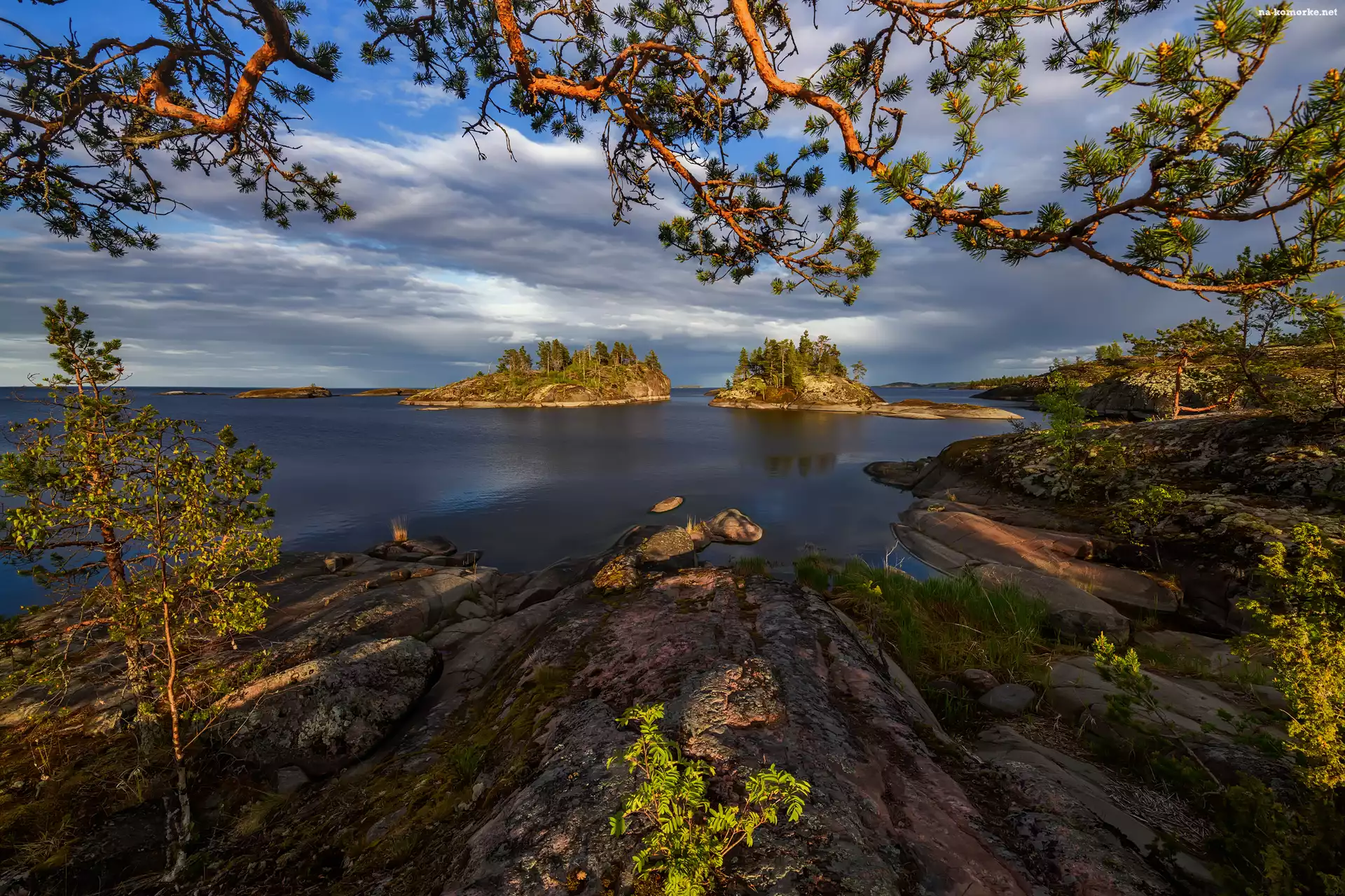 Drzewa, Wyspy, Skały, Ładoga, Jezioro, Karelia, Rosja, Wysepki, Gałęzie na Komórkę