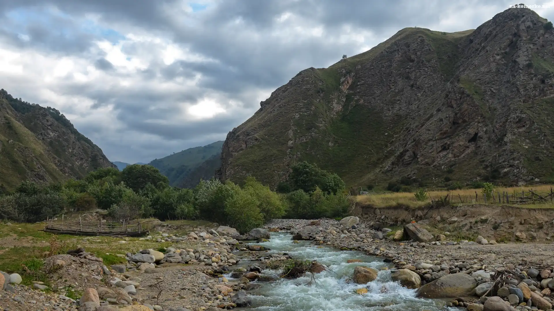 Drzewa, Góry, Kamienie, Rzeka, Strumyk na Komórkę