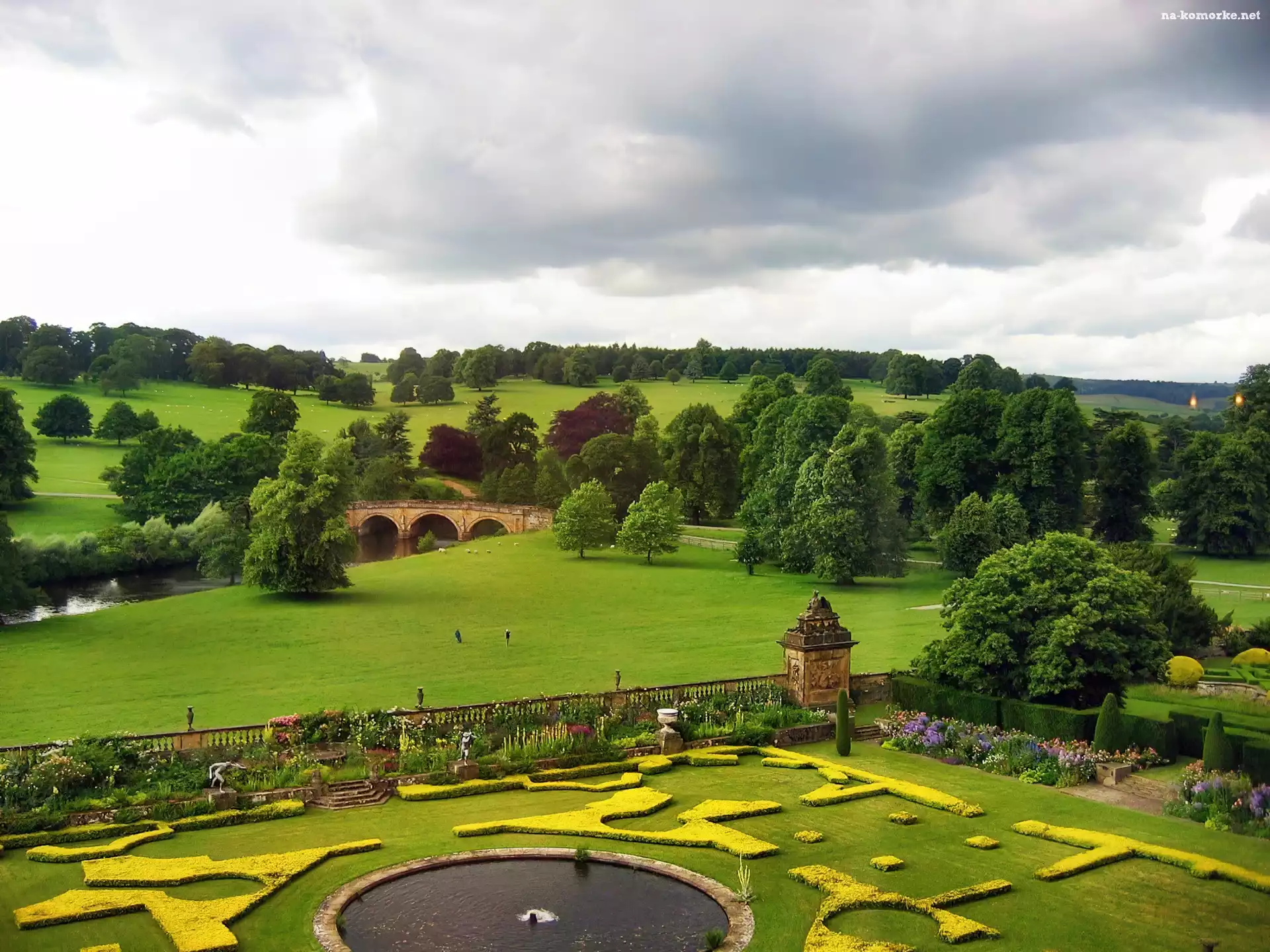 Pola, Rzeka, Most, Ogrody, Drzewa na Komórkę