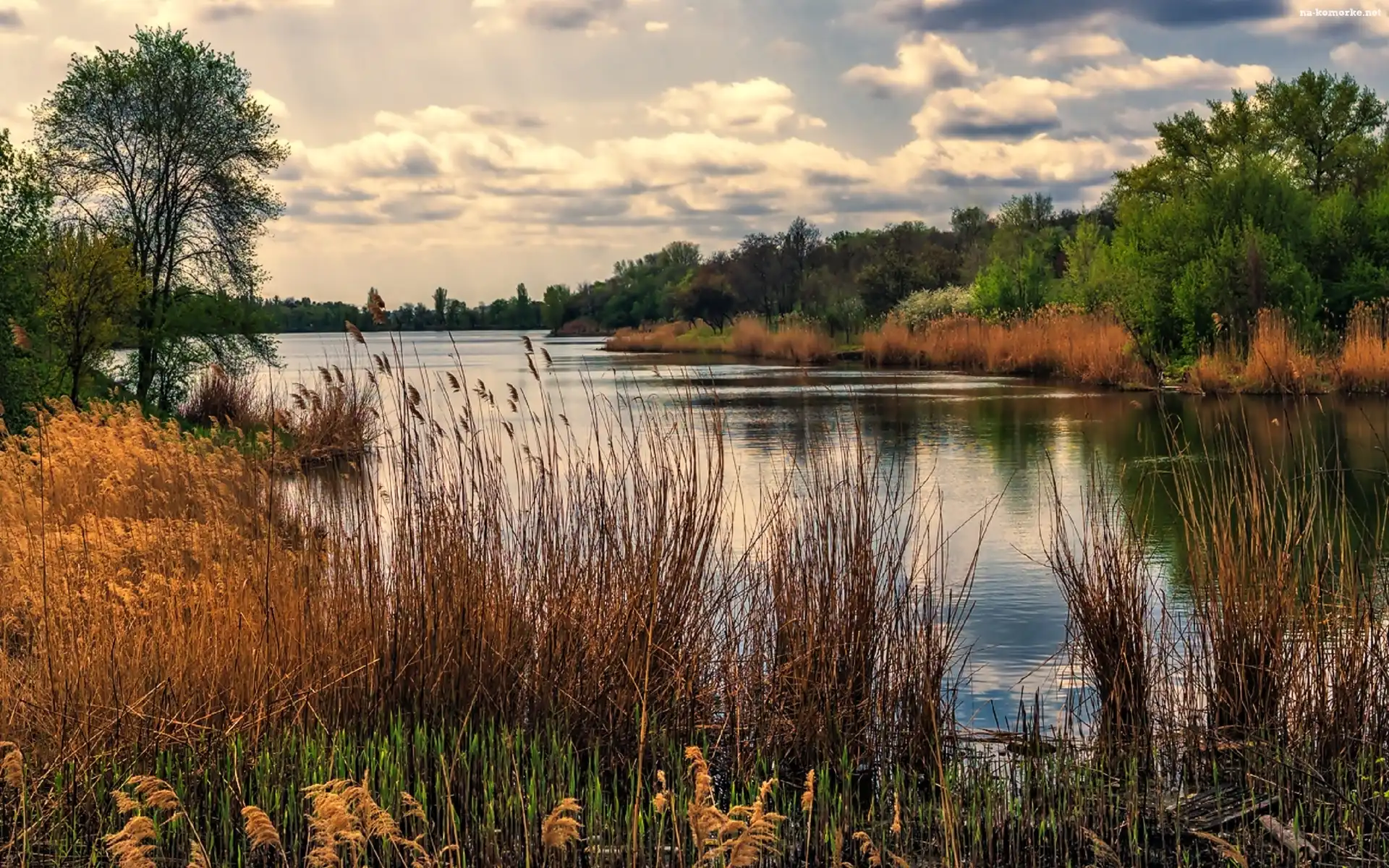 Rzeka, Drzewa, Trzciny na Komórkę