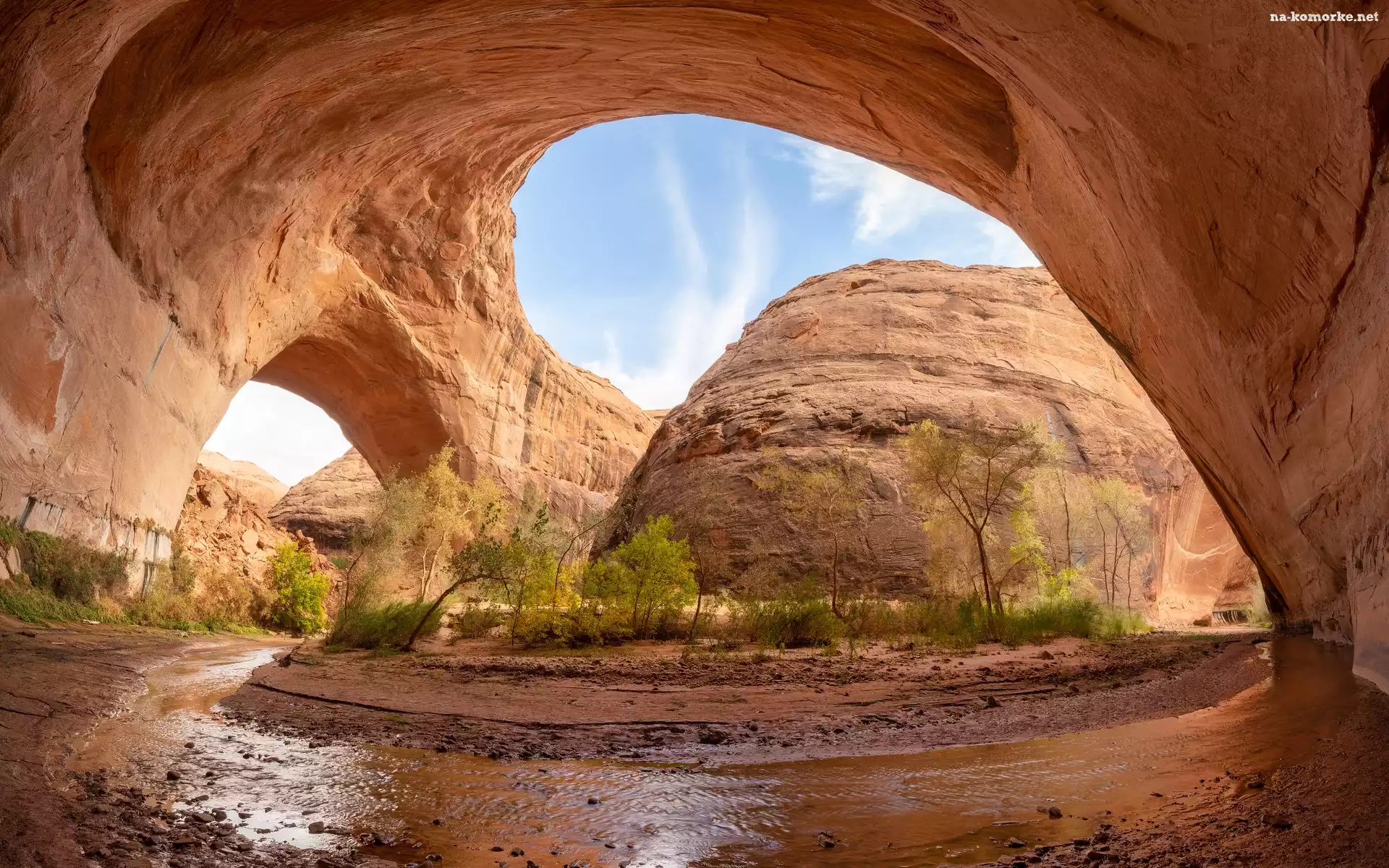 Coyote Gulch, Utah, Skały, Stany Zjednoczone, Drzewa, Rzeka, Łuk Jacoba Hamblina na Komórkę