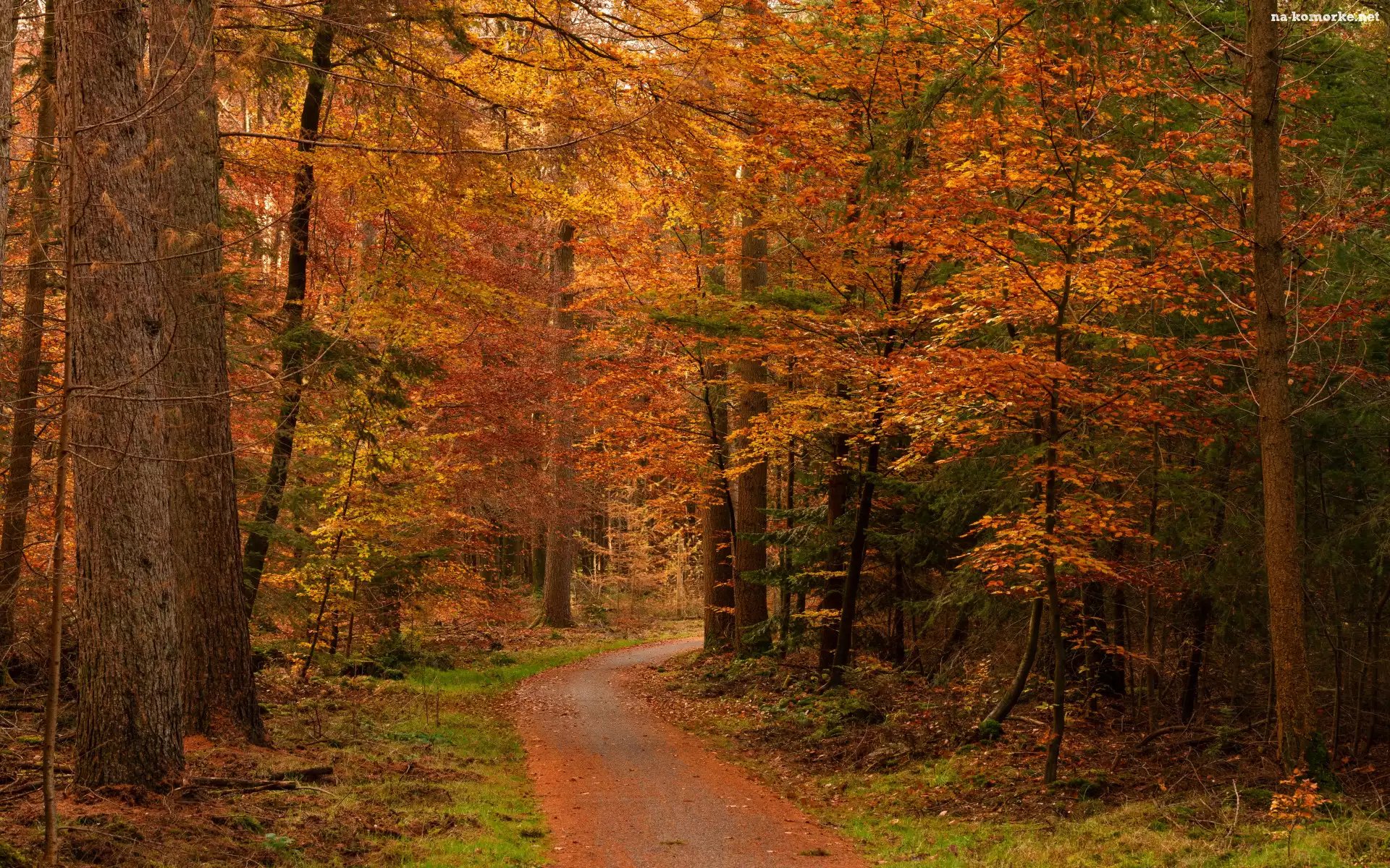 Jesień, Drzewa, Ścieżka, Las, Liście na Komórkę