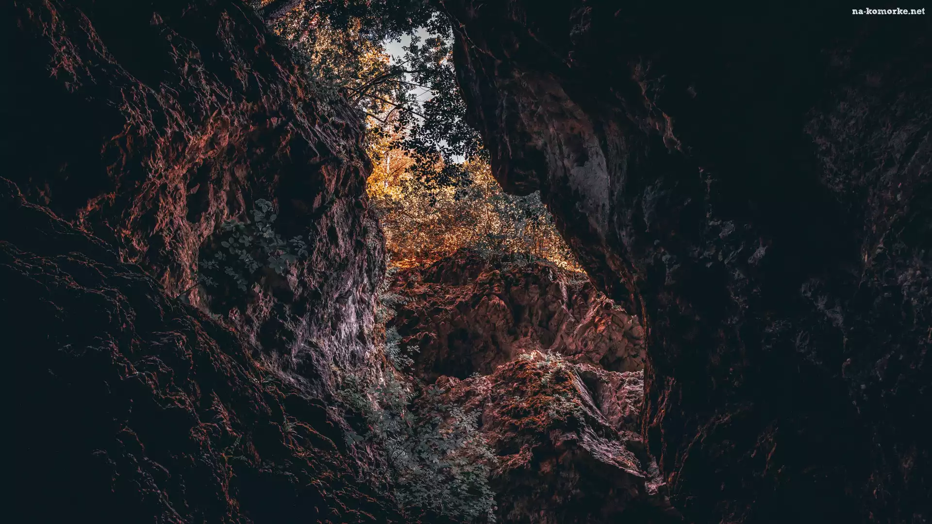 Skały, Drzewa, Jaskinia na Komórkę