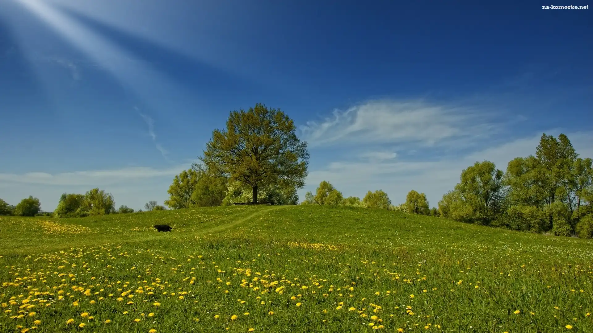 Łąka, Słońca, Drzewa, Promienie na Komórkę
