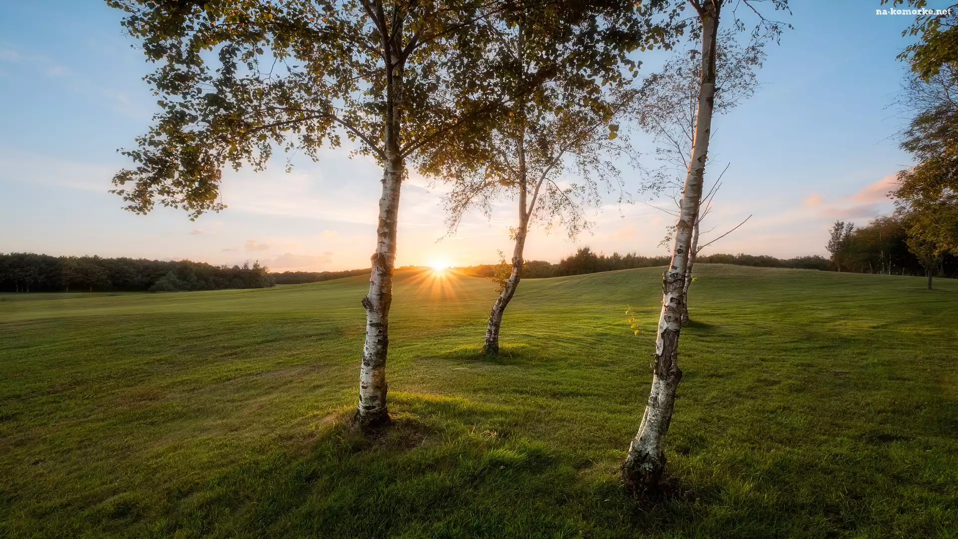 Pole, Brzozy, Trawa, Drzewa, Promienie słońca na Komórkę