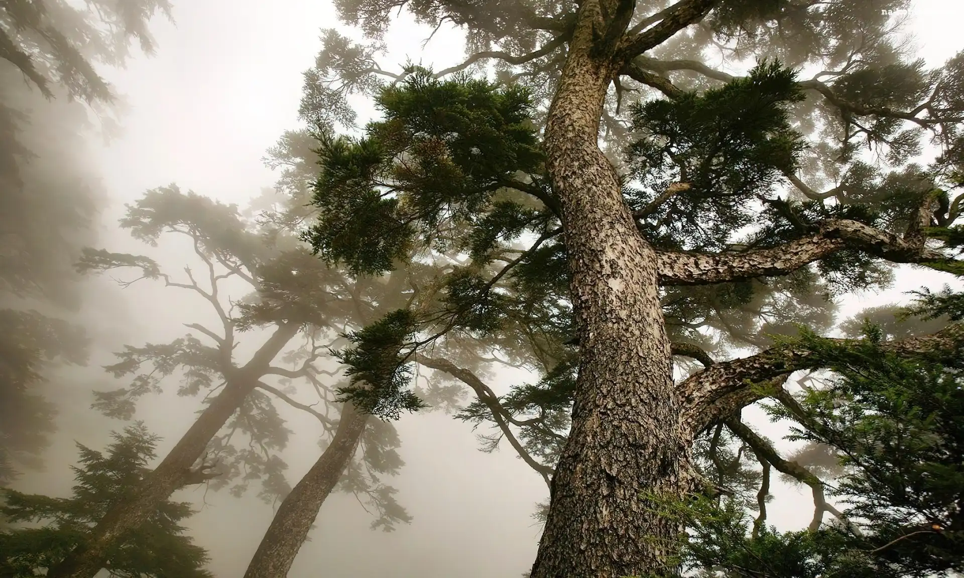Drzewa, Mgła, Sosny, Poranek na Komórkę