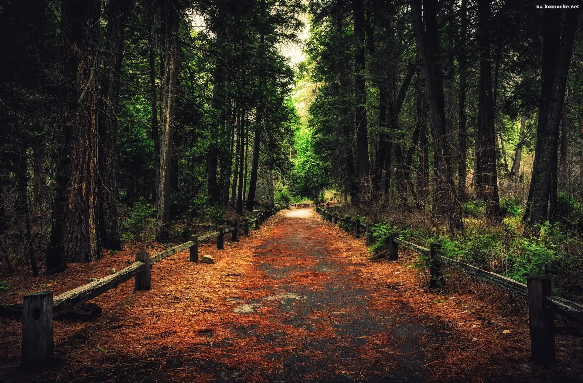 Stany Zjednoczone, Drzewa, Ogrodzenie, Stan Kalifornia, Park Narodowy Yosemite, Droga, Las na Komórkę |