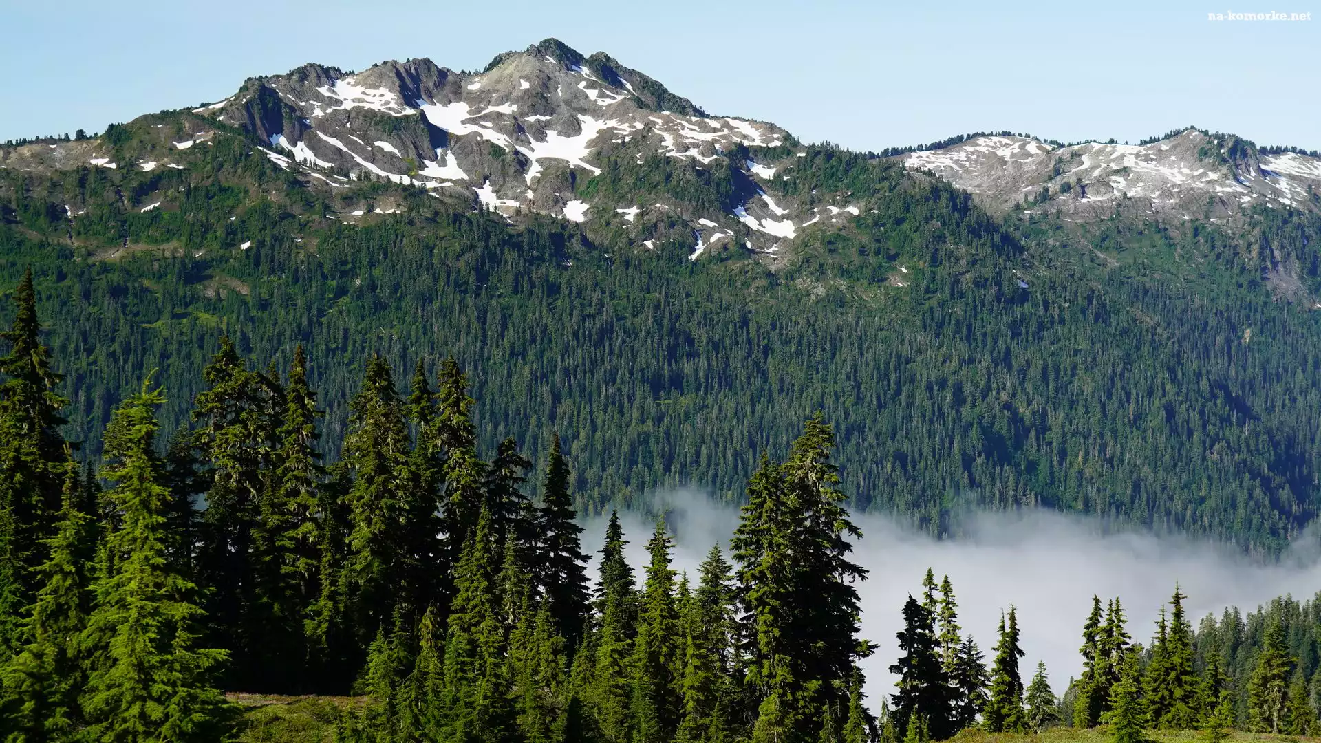 Góry, Drzewa, Świerki, Las, Mgła na Komórkę