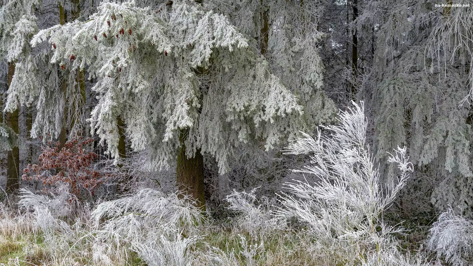 Las, Drzewa, Szron, Oszronione, Zima na Komórkę