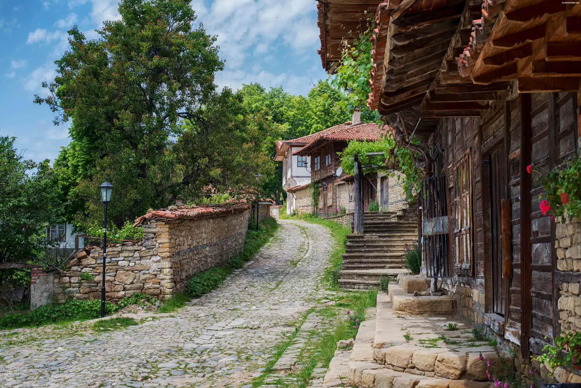 Drzewa, Bułgaria, Zheravna, Ulica, Domy na Komórkę