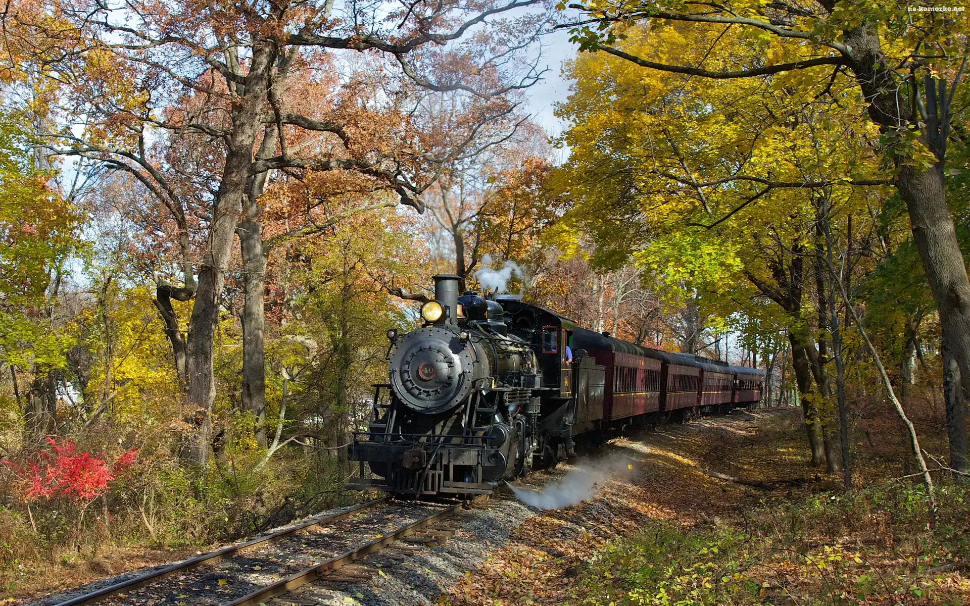 Drzewa, Lokomotywa, Parowa, Wagony, Tor na Komórkę