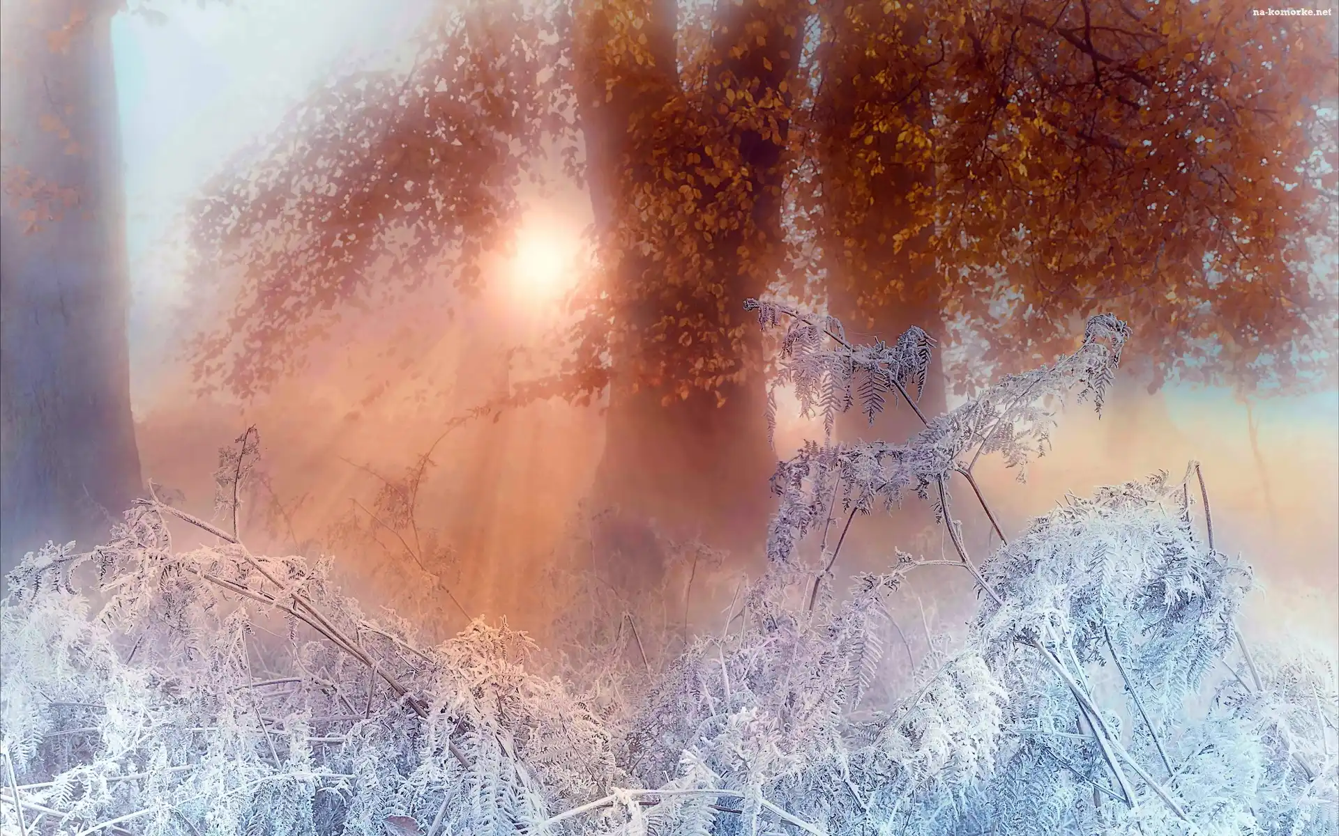 Drzewa, Zima, Przebijające Światło, Krzewy na Komórkę
