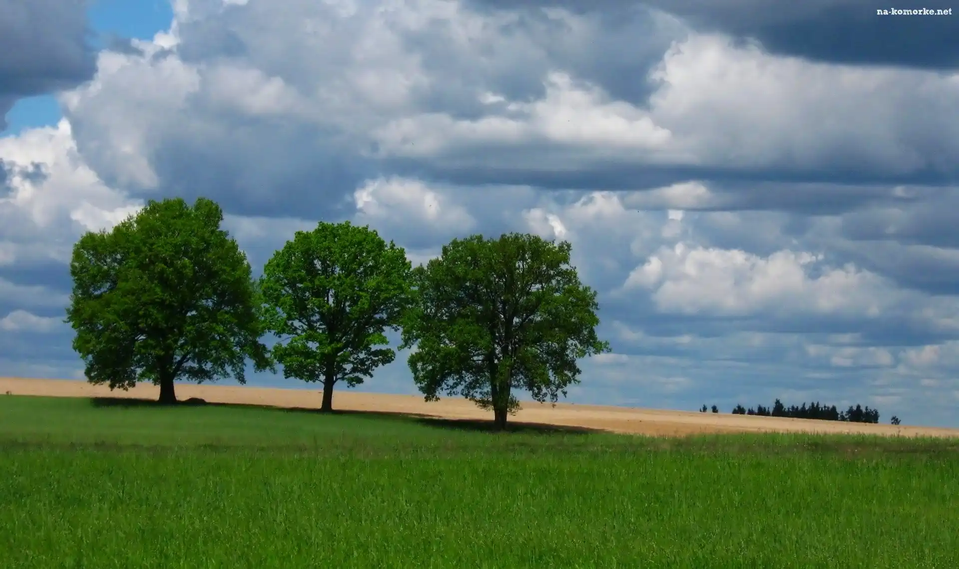 Drzewa, Chmury, Wiosna, Pole na Komórkę