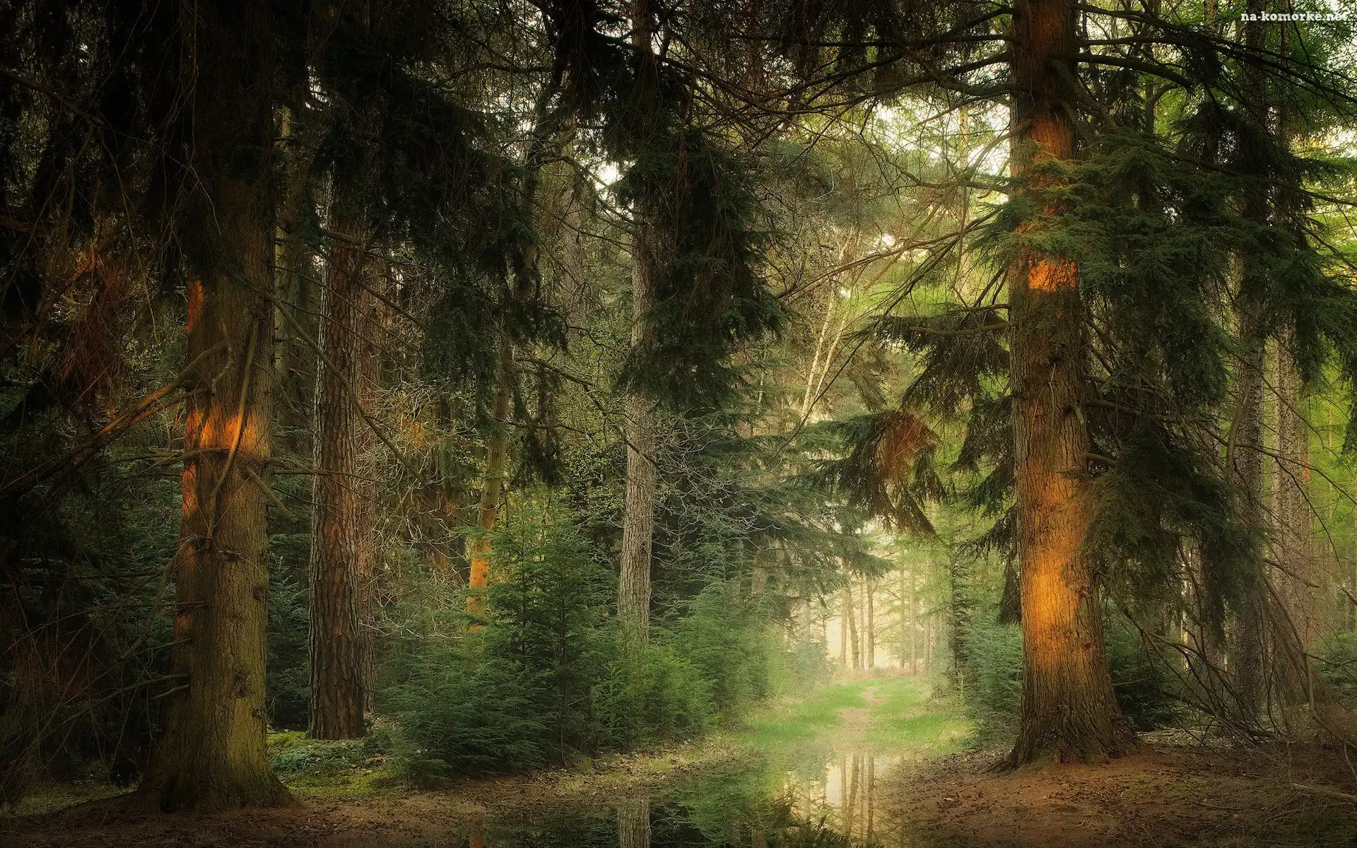 Wiosna, Kałuża, Las, Drzewa na Komórkę
