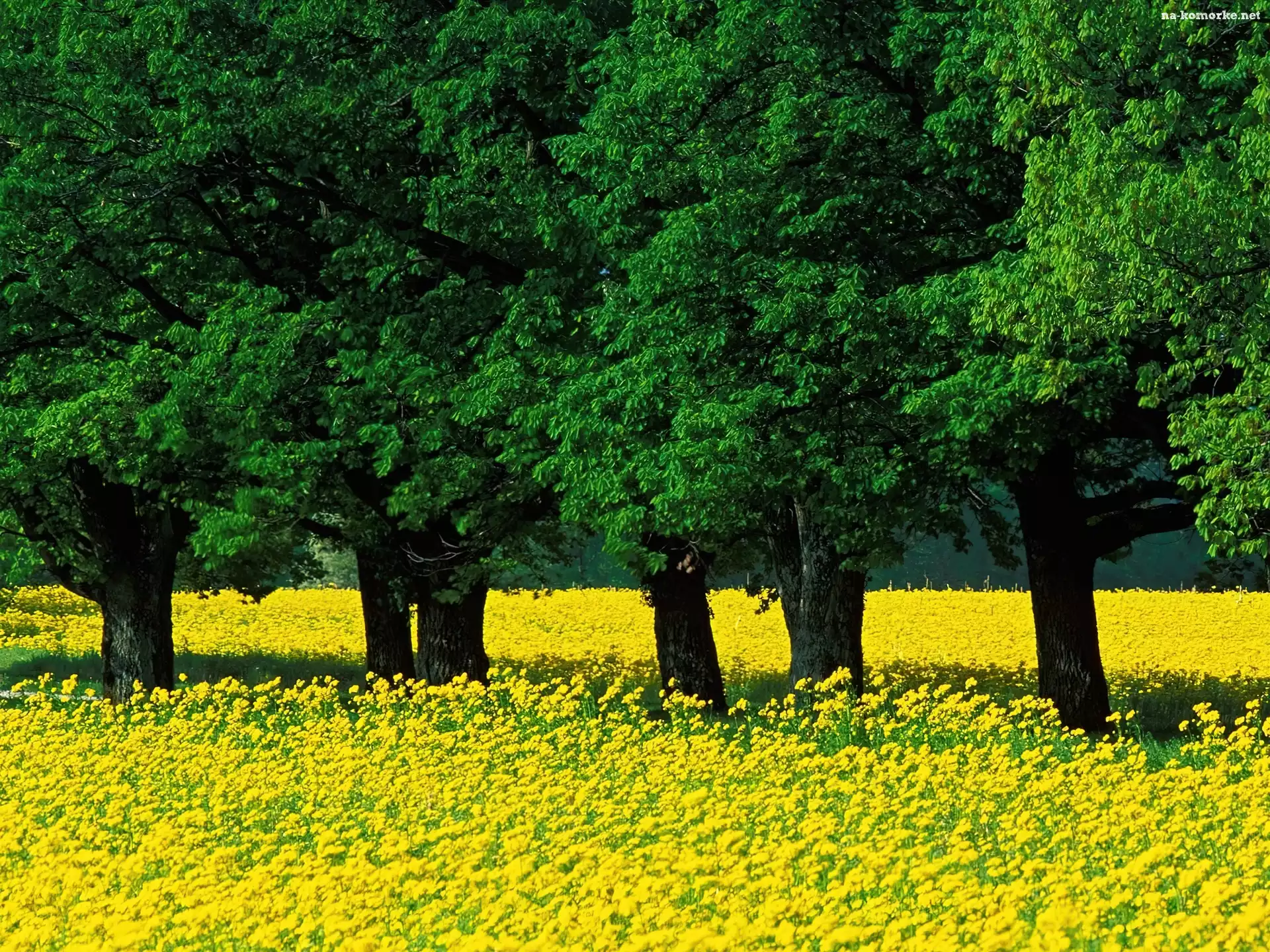 Łąka, Wiosna, Zielone, Drzewa, Żółta na Komórkę