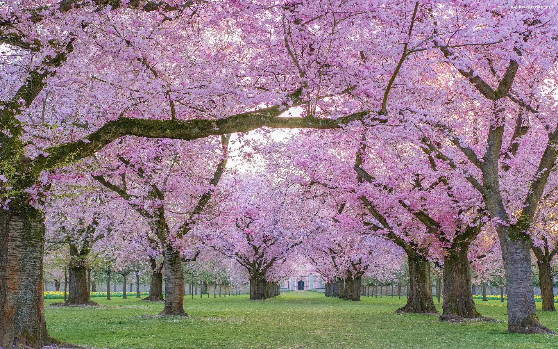 Wiśnie, Park, Wiosna, Drzewa na Komórkę
