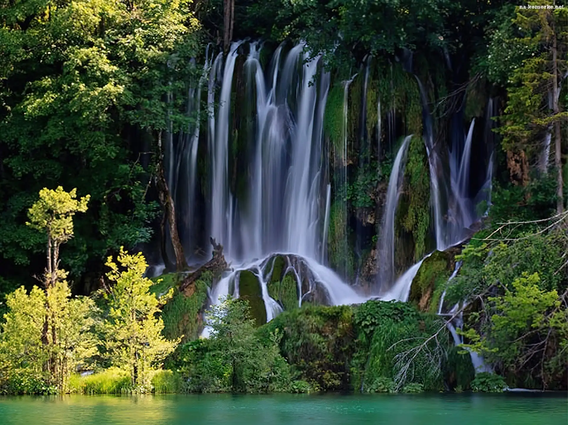 Wodospad, Drzewa, Skały na Komórkę