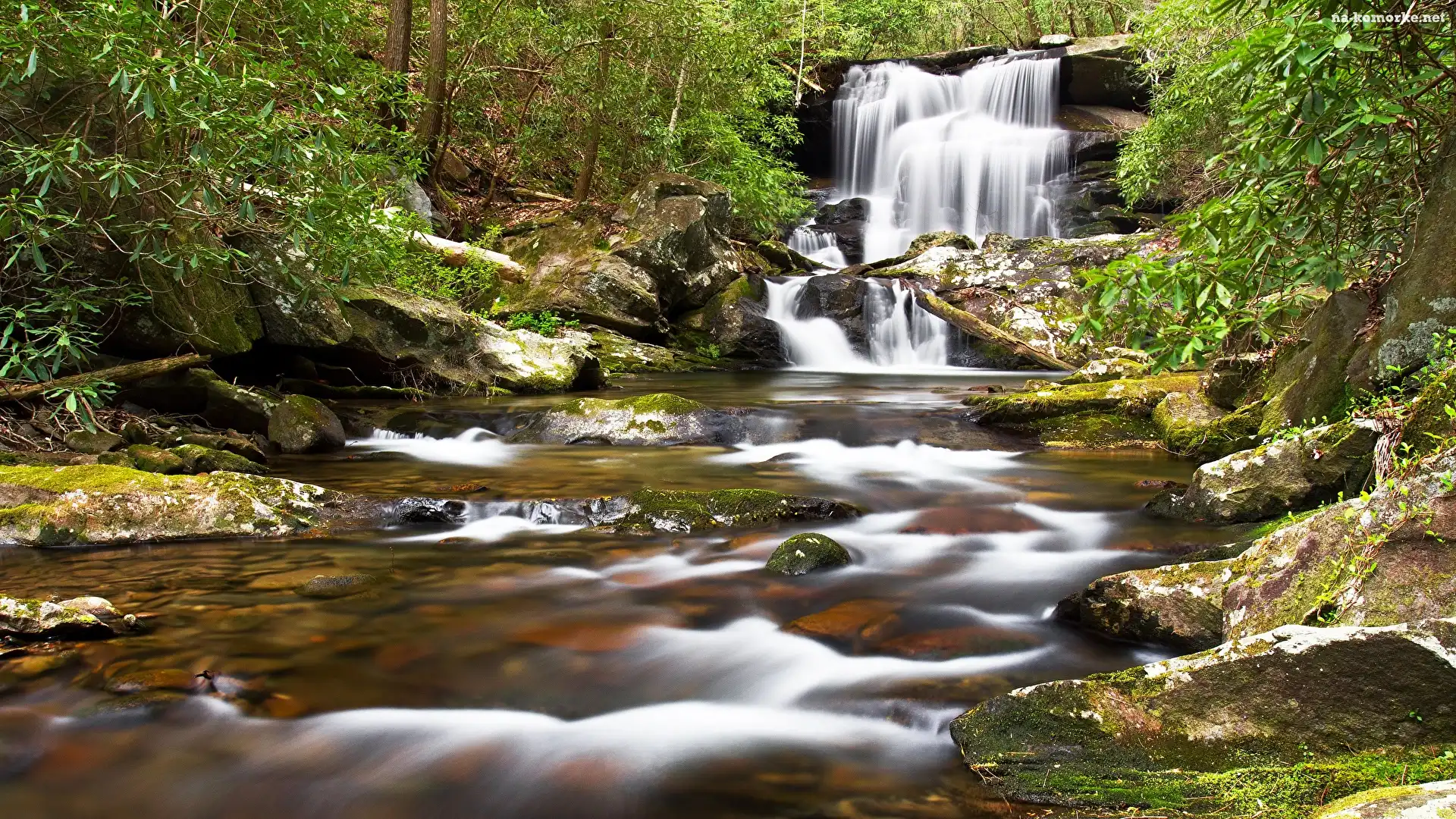 Wodospad, Drzewa, Rośliny, Rzeka, Omszałe, Kamienie, Skały na Komórkę