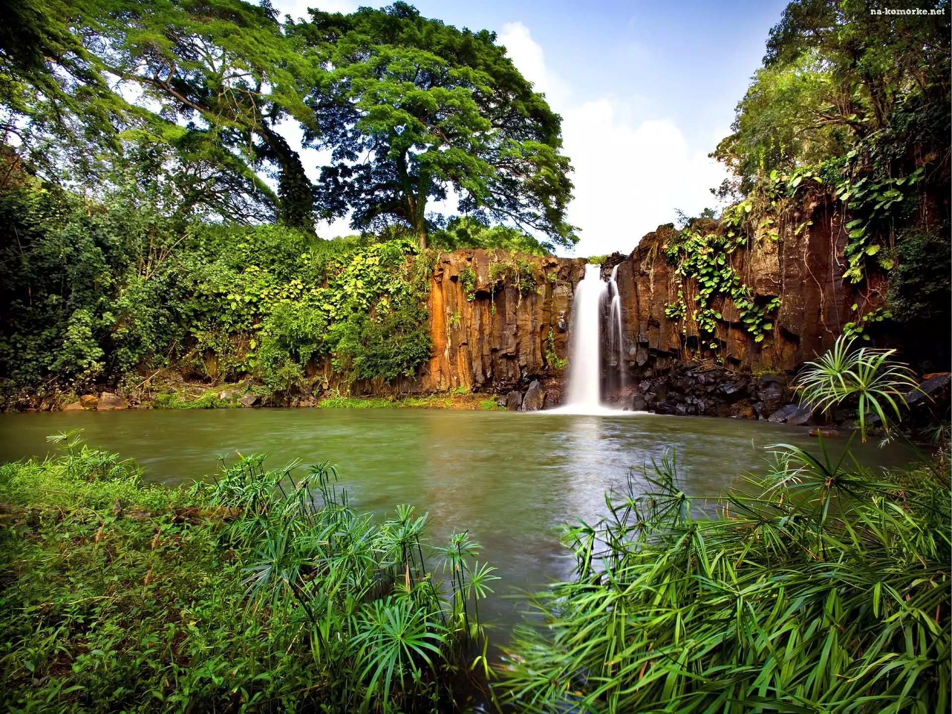 Wodospad, Rzeka, Drzewa, Gałęzie Wodospad Ogród, Drzewa Drzewo Wodospad Spieniona, Skały, Woda, Wodospad Wodospad Stok, Góry, Kamienie Wodospad, Las, Rzeka Żółte, Liście, Czerwone, Drzewa Czerwone, Słońce, Drzewo Punica, Granatu, Granatum, Kwiat Obłoki, Zielona, Łąka, Drzewa, Białe Drzewo, Zachód Słońca Wodospad