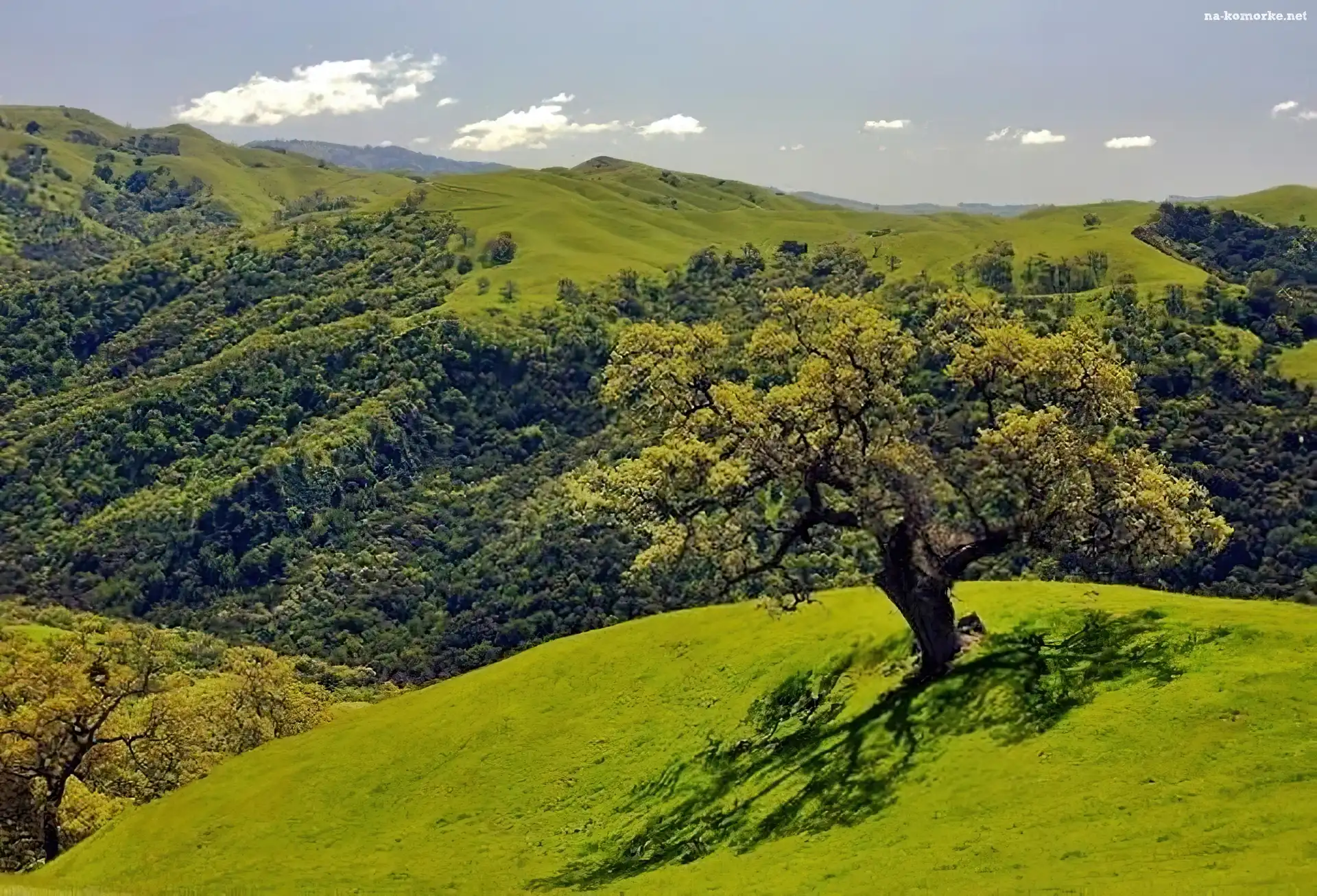 Wzgórza, Drzewa, Zieleń na Komórkę
