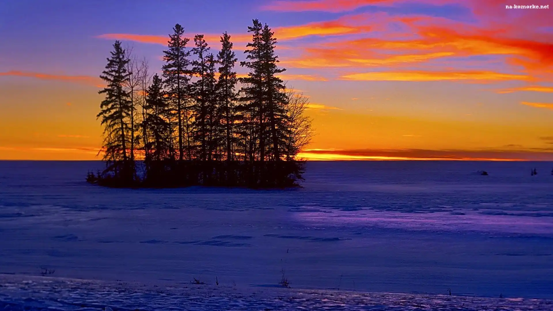 Łąka, Zima, Drzewa, Niebo na Komórkę