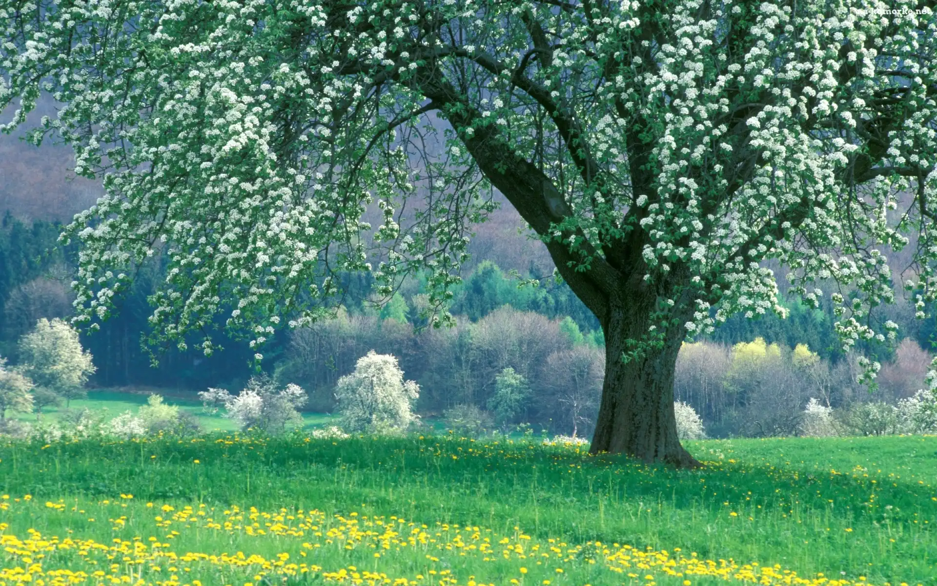 Drzewo, Las, Łąka, Kwiat na Komórkę