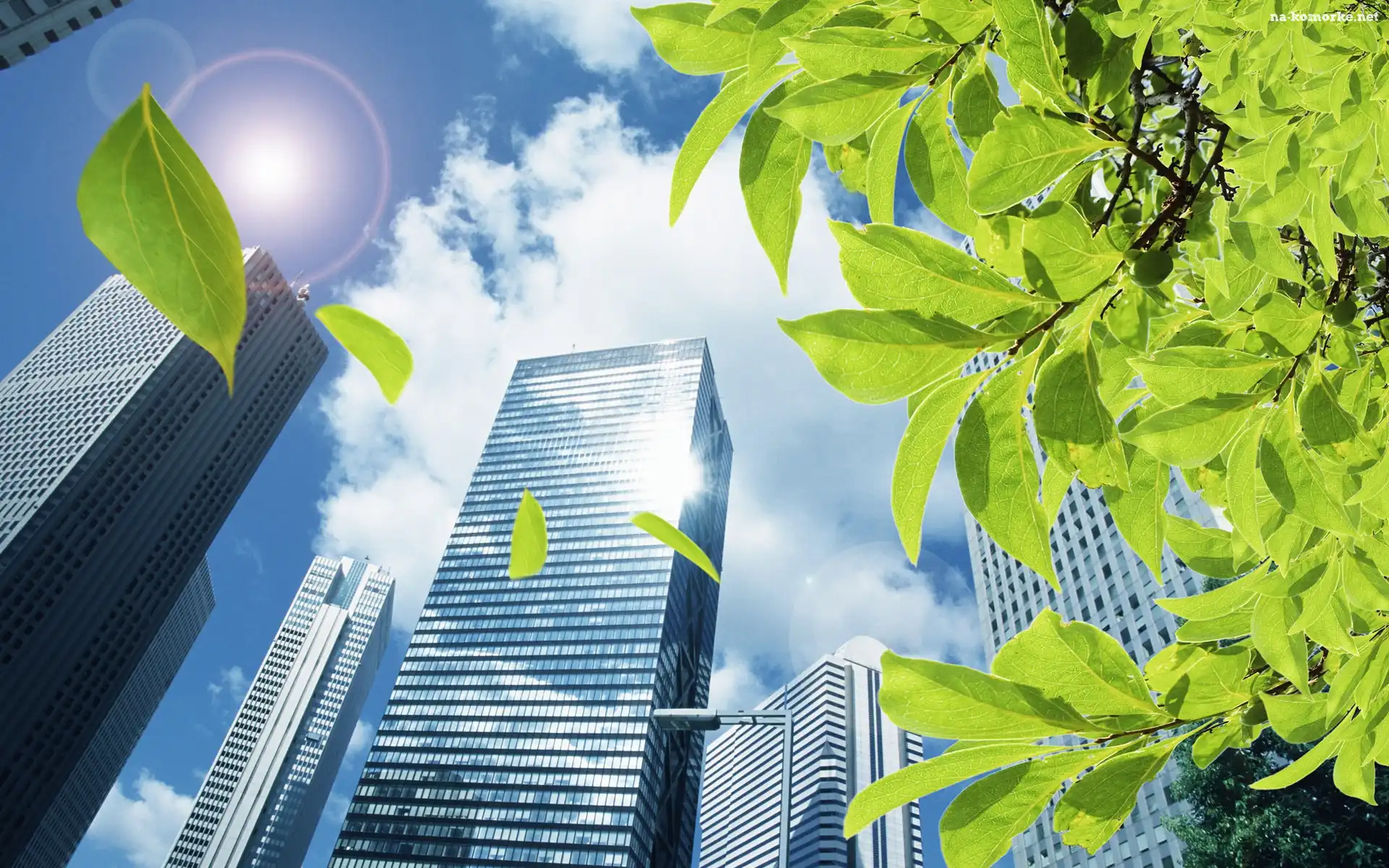 Drzewo, Niebo, Drapacze, Chmur, Liście na Komórkę