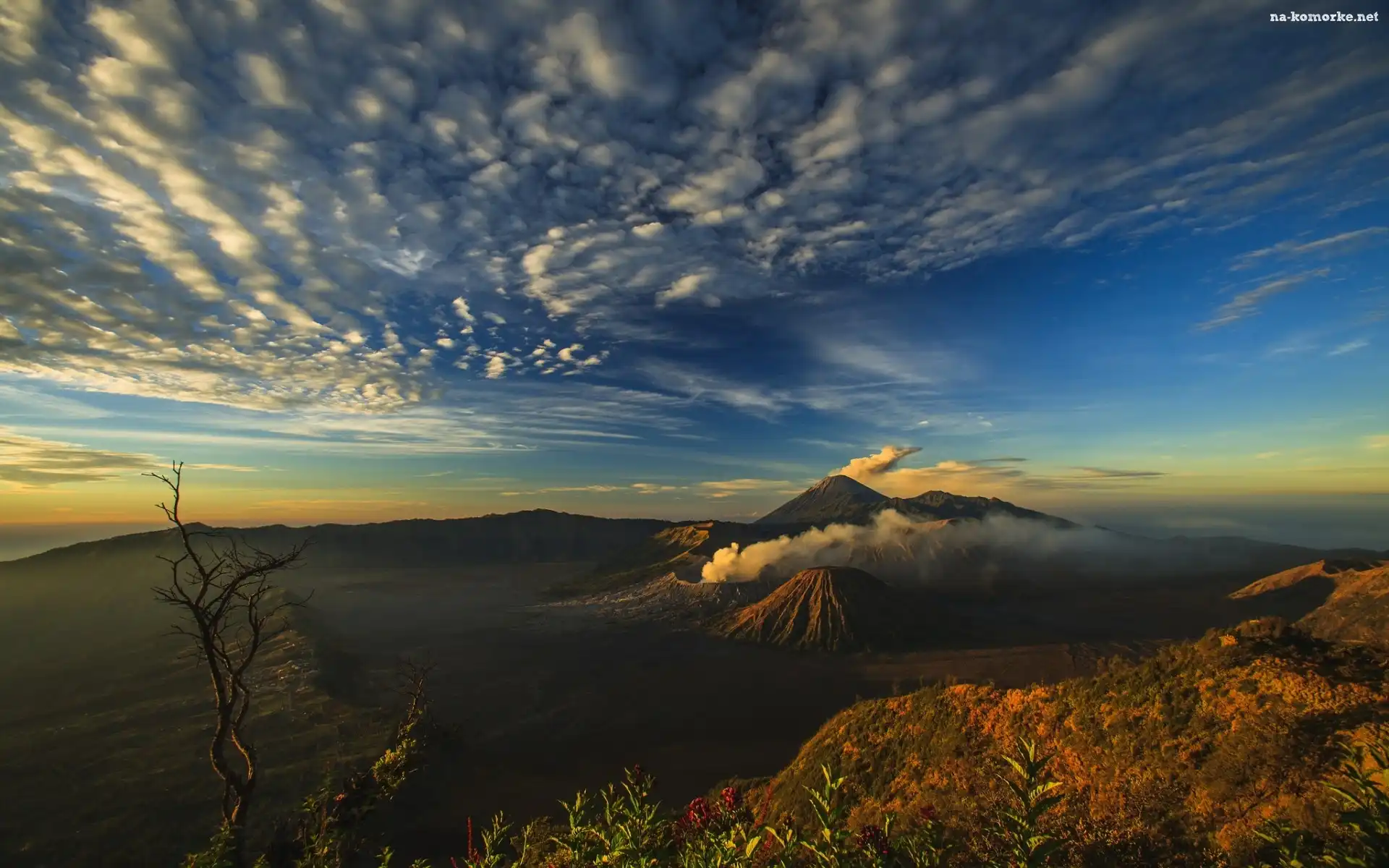Drzewo, Wzgórze, Wulkan, Chmury, Mgła na Komórkę