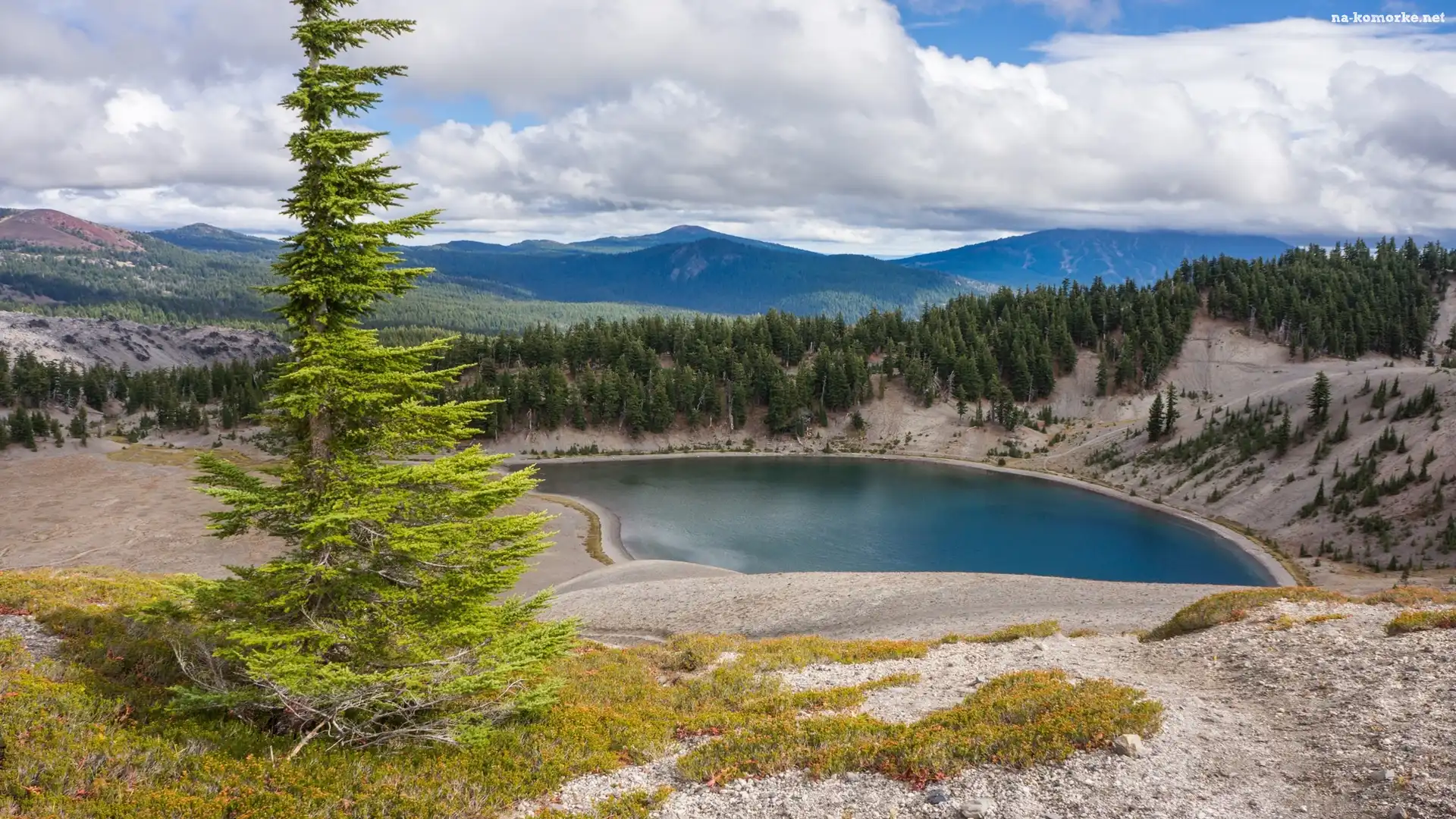 Drzewo, Góry, Jezioro, Wzgórza na Komórkę