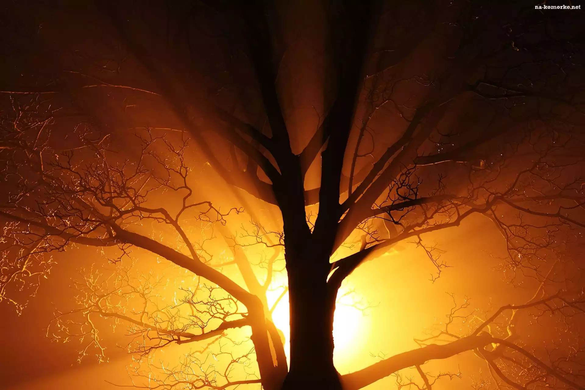 Drzewo, Światło, Konary, Przebijające na Komórkę