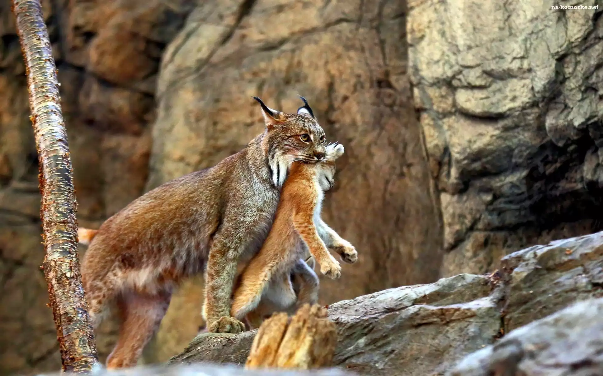 Drzewo, Ryś, Z, Młodym, Skały na Komórkę