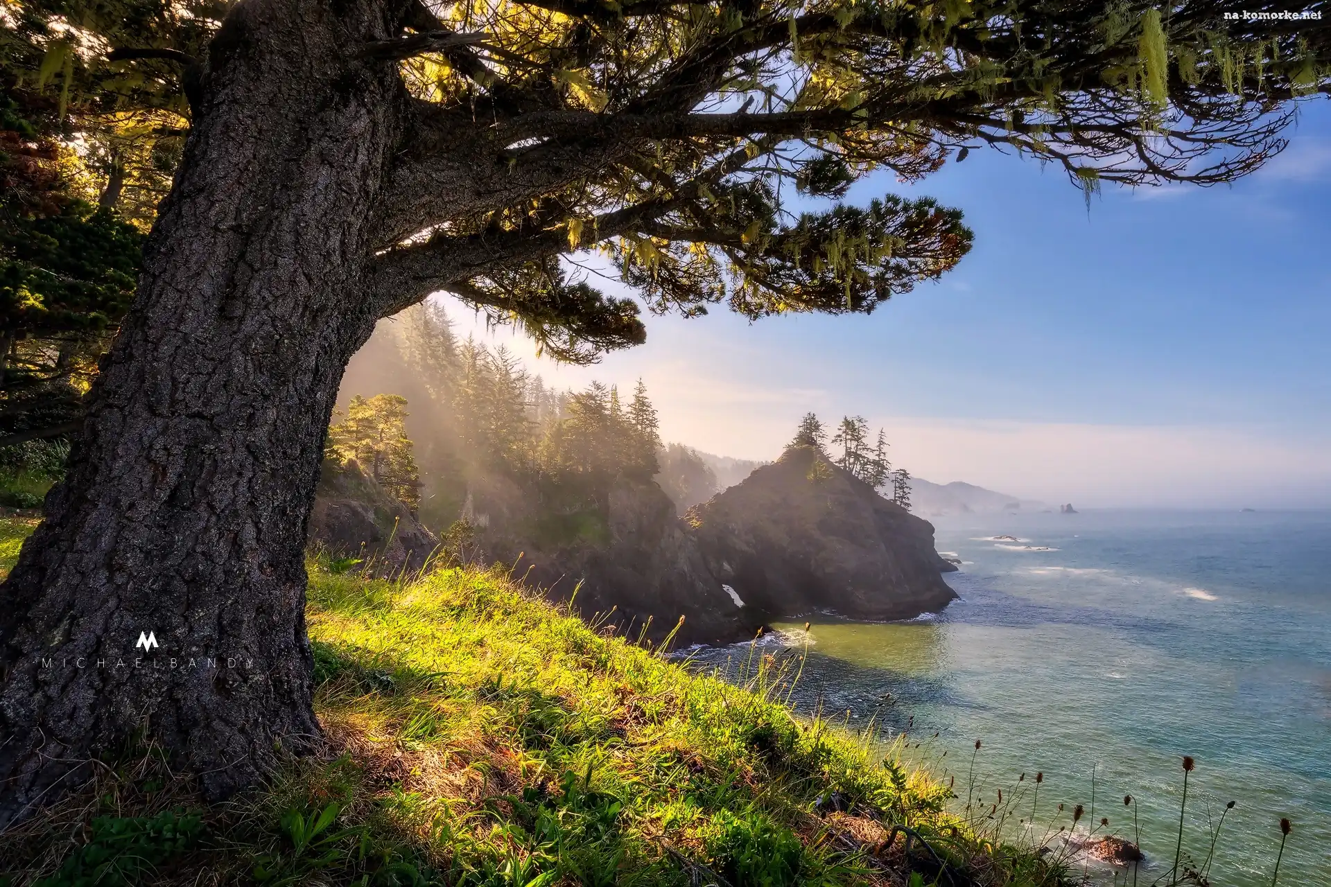 Drzewo, Skały, Poranek, Wybrzeże na Komórkę