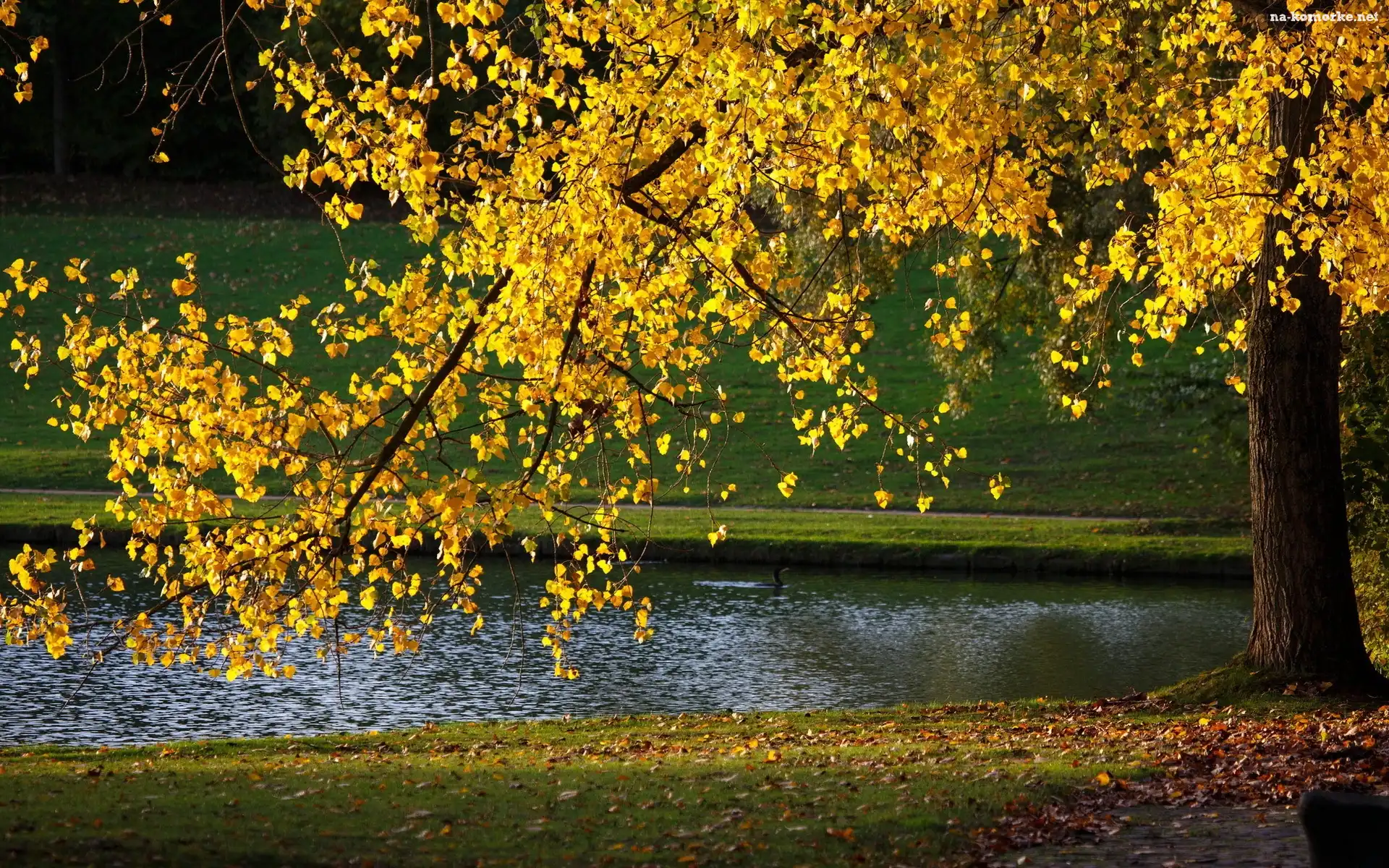 Rzeka, Drzewo, Jesień na Komórkę