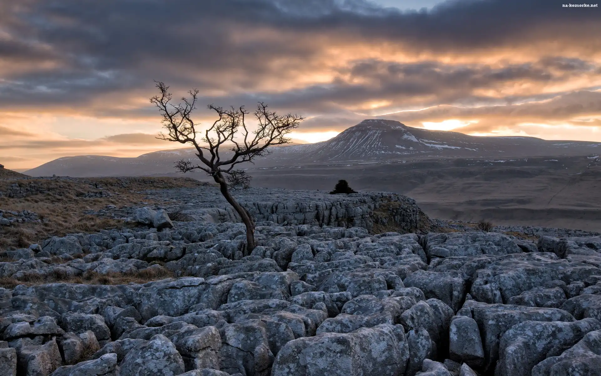 Drzewo, Zachód, Słońca, Skały, Kamienie na Komórkę