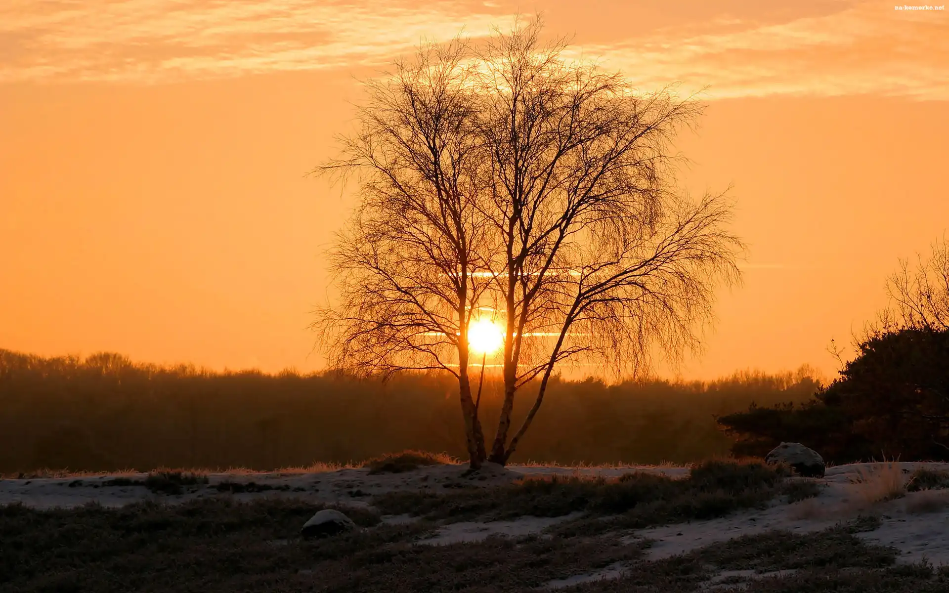 Drzewo, Śnieg, Zachód, Słońca na Komórkę