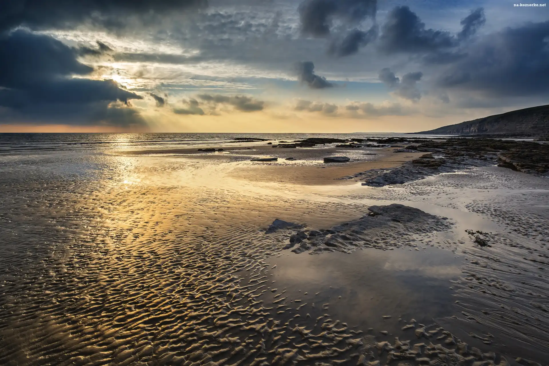 Plaża Dunraven Bay, Wschód słońca, Walia, Morze na Komórkę