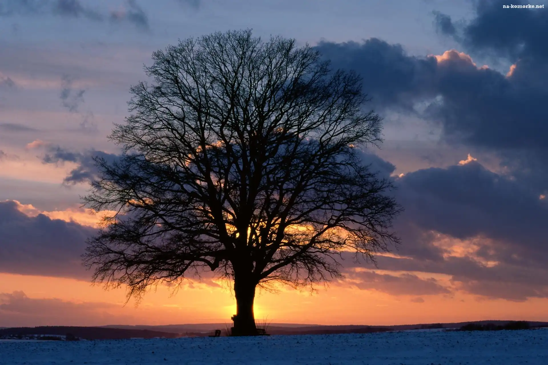 Duże, Słońca, Drzewo, Zachód na Komórkę