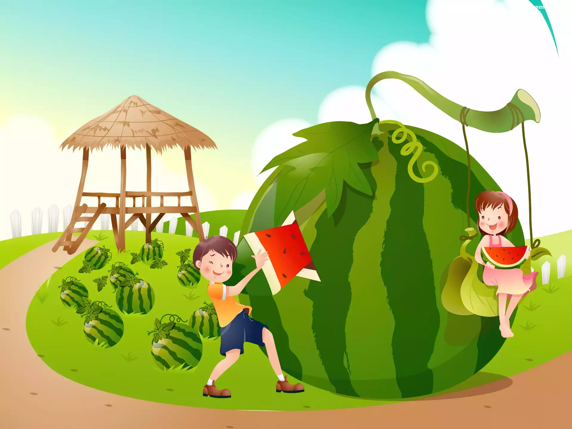 Dzieci, Duży, Arbuz na Komórkę