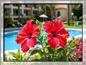 Hibiskus, Czerwone, Kwiaty, Dwa, Grafika AI na Komórkę