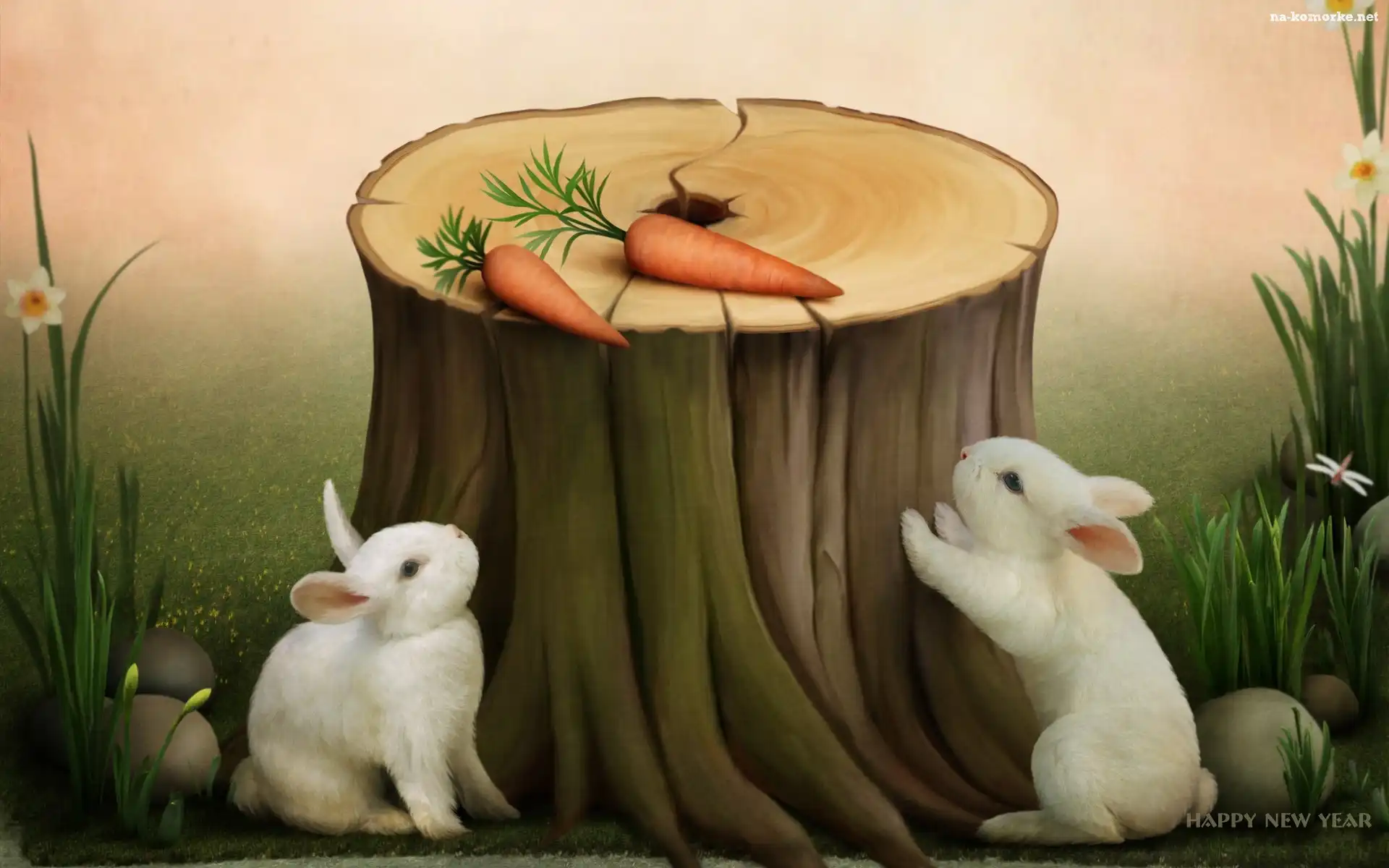 Dwa, Marchewki, Białe, Króliki na Komórkę