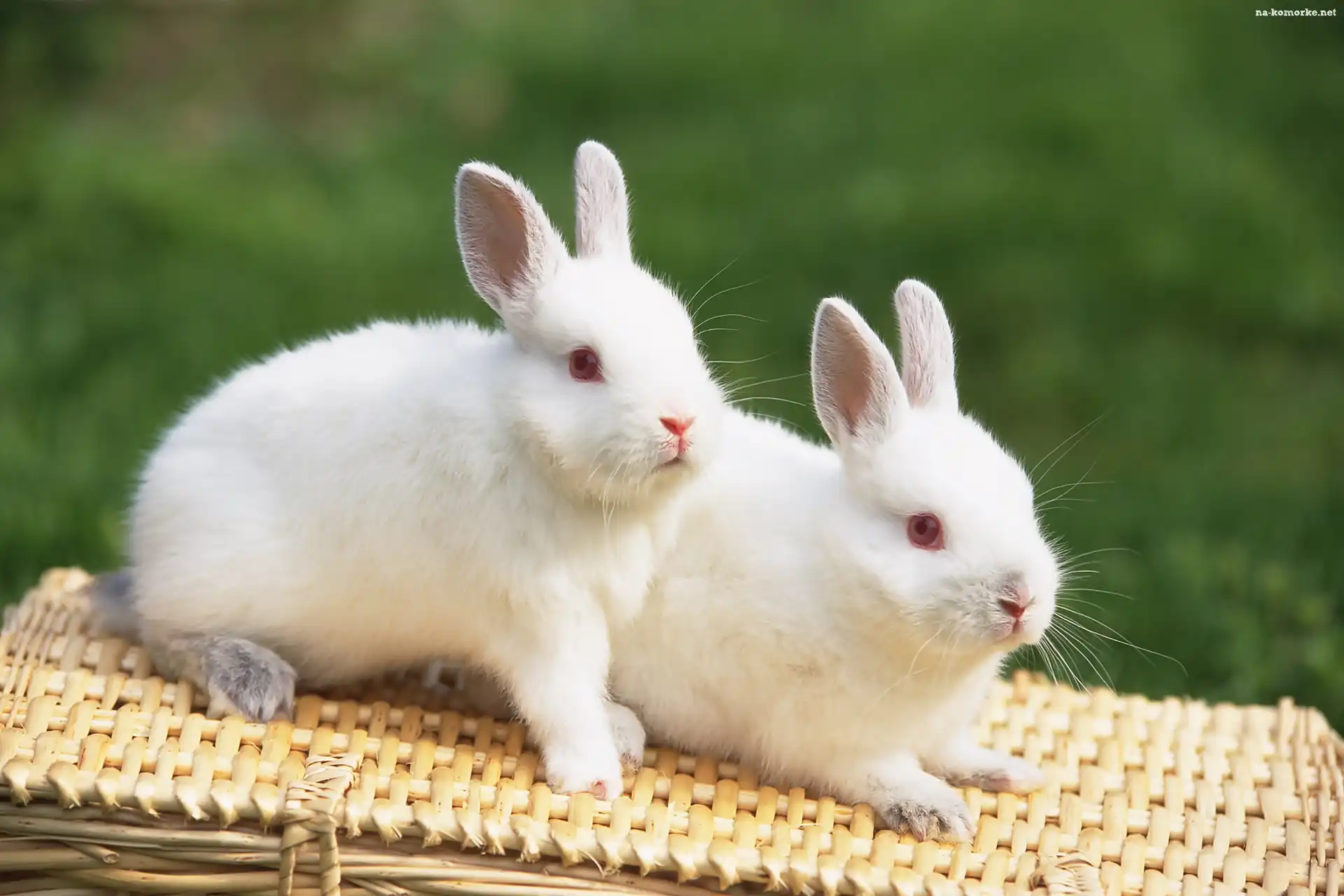 Dwa, Trawa, Białe, Króliki na Komórkę