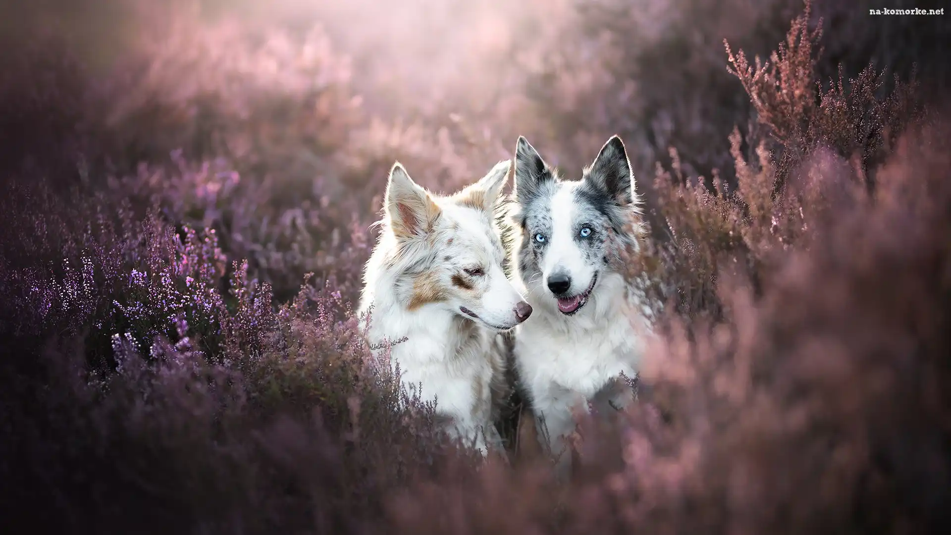 Dwa, Wrzosy, Psy, Border collie na Komórkę