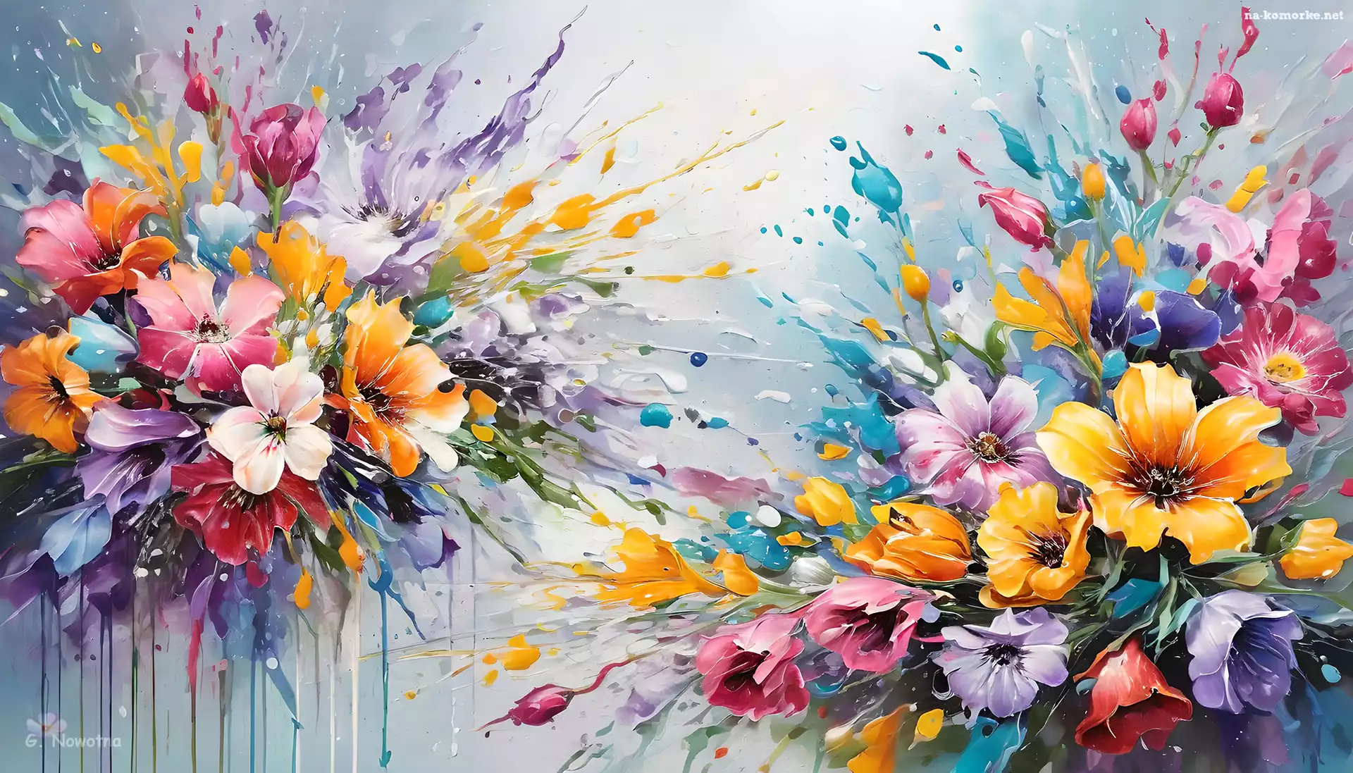 Kolorowe, Dwa, Bukiety, Kwiaty, Grafika na Komórkę