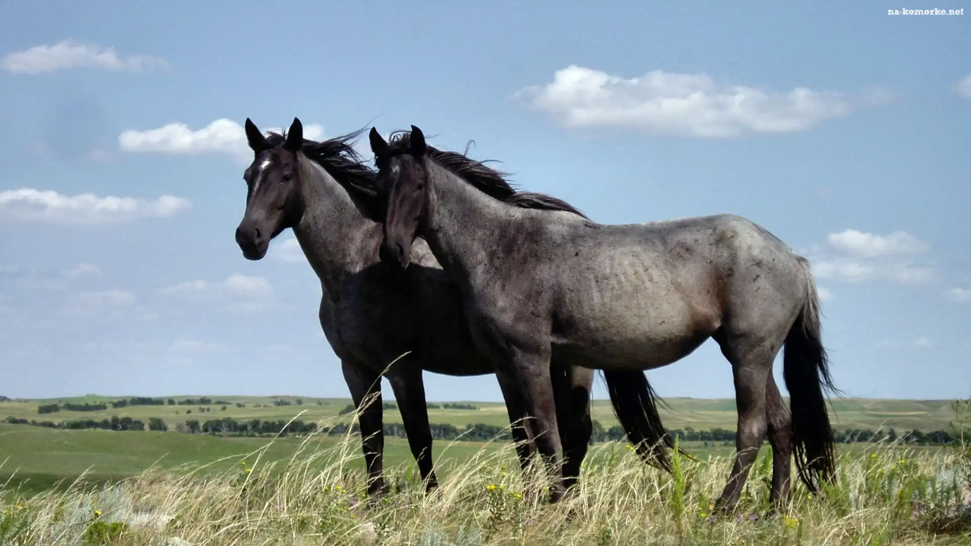 Dwa, Łąka, Czarne, Konie na Komórkę