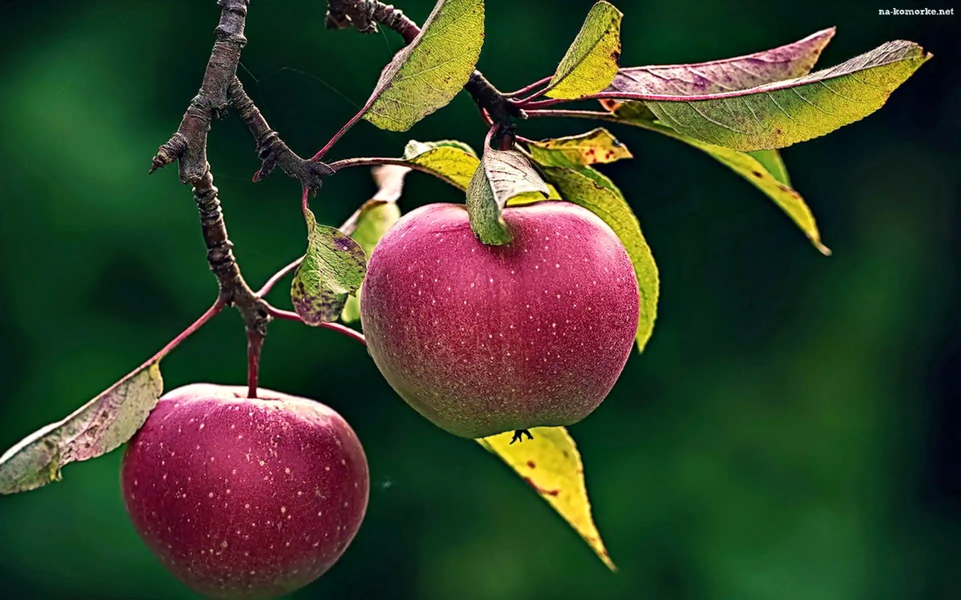 Dwa, Listki, Jabłka, Gałązka na Komórkę
