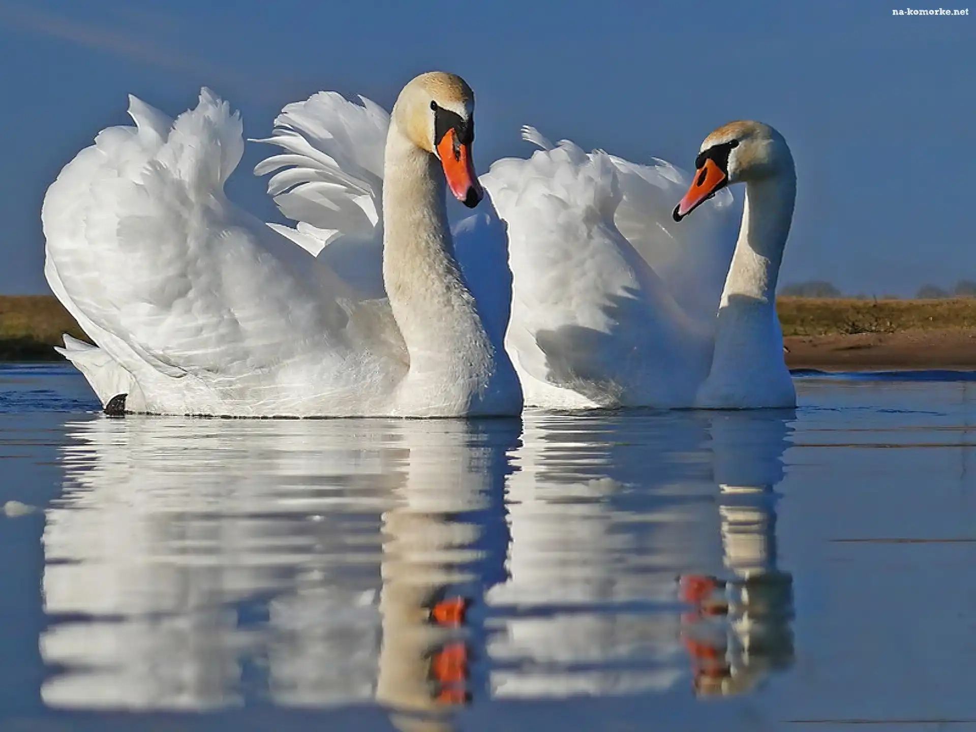Jezioro, Dwa, Łabędzie na Komórkę