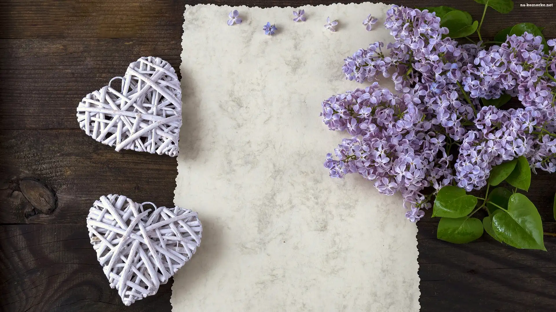 Dwa, Gałązka, Bez, Deski, Kartka, Serca na Komórkę